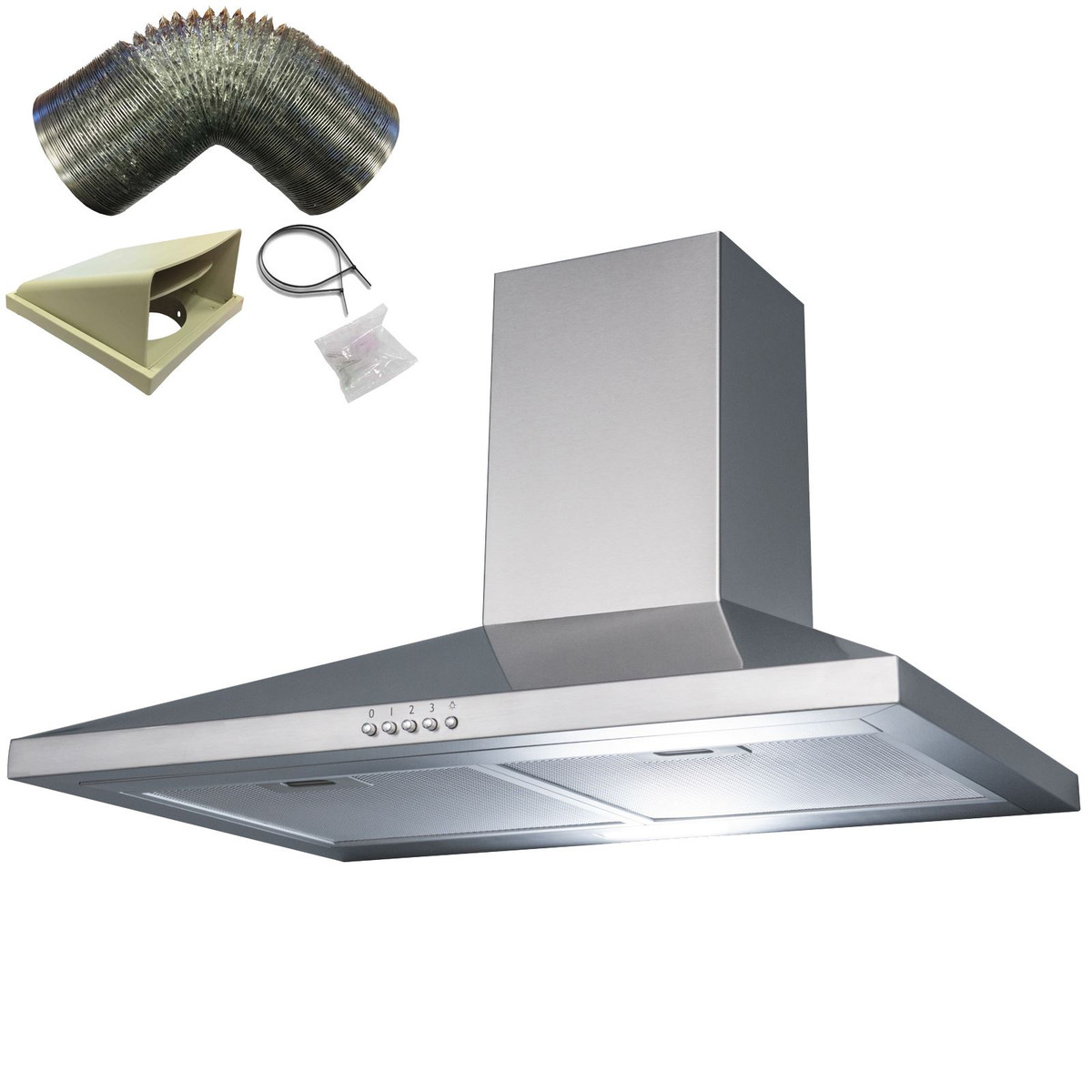 This cooker hood comes with the D7 150mm x 3m ducting kit, so you have everything you need to set it up for external extraction. The ducting kit is used to channel odours, steam and smoke straight outside, keeping your kitchen clean and fresh. The appliance can be used for internal re-circulation however carbon filter(s) would need to be purchased separately.
