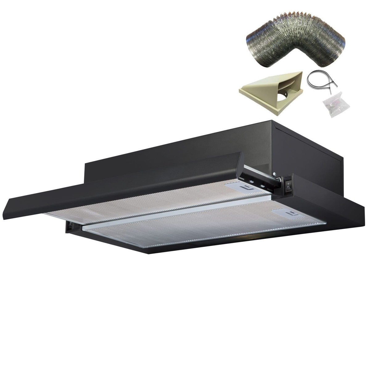 The TSH60BL is a 60cm telescopic integrated extractor fan. With its sharp black design and flexible functionality, this extractor fan is catered for cooks of all levels. As an integrated hood, it’s compact size maximises the space around, giving a seamless look in the kitchen. The TSH60BL is fully equipped with everything you need for a high quality, top functioning cooker hood!