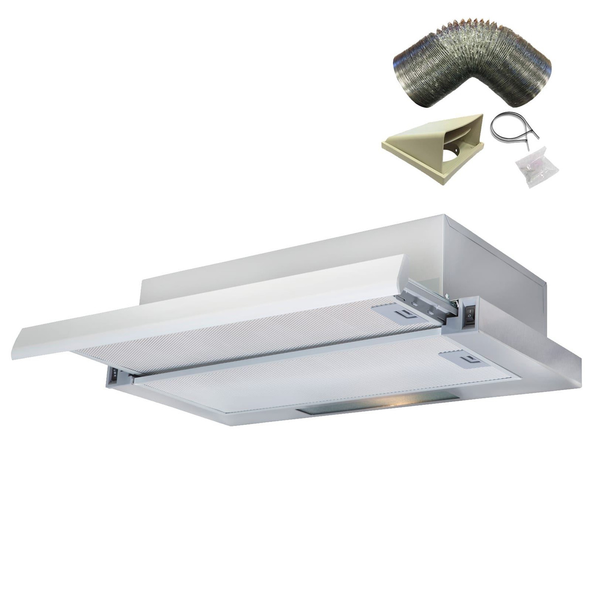 This cooker hood comes with the SIA D3 125mm x 3m ducting kit, so you have everything you need to set it up for external extraction. The ducting kit is used to channel odours, steam and smoke straight outside, keeping your kitchen clean and fresh. The appliance can be used for internal re-circulation however a carbon filter would need to be purchased separately.