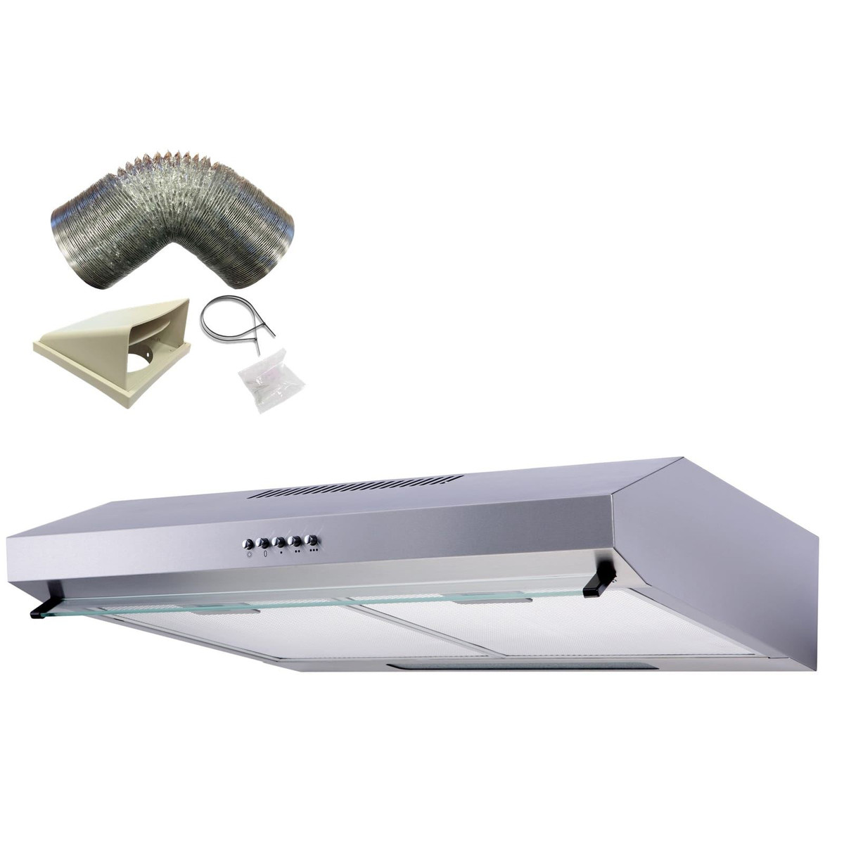 This cooker hood comes with the SIA D3 125mm x 3m ducting kit, so you have everything you need to set it up for external extraction. The ducting kit is used to channel odours, steam and smoke straight outside, keeping your kitchen clean and fresh. The appliance can be used for internal re-circulation however a carbon filter would need to be purchased separately.
