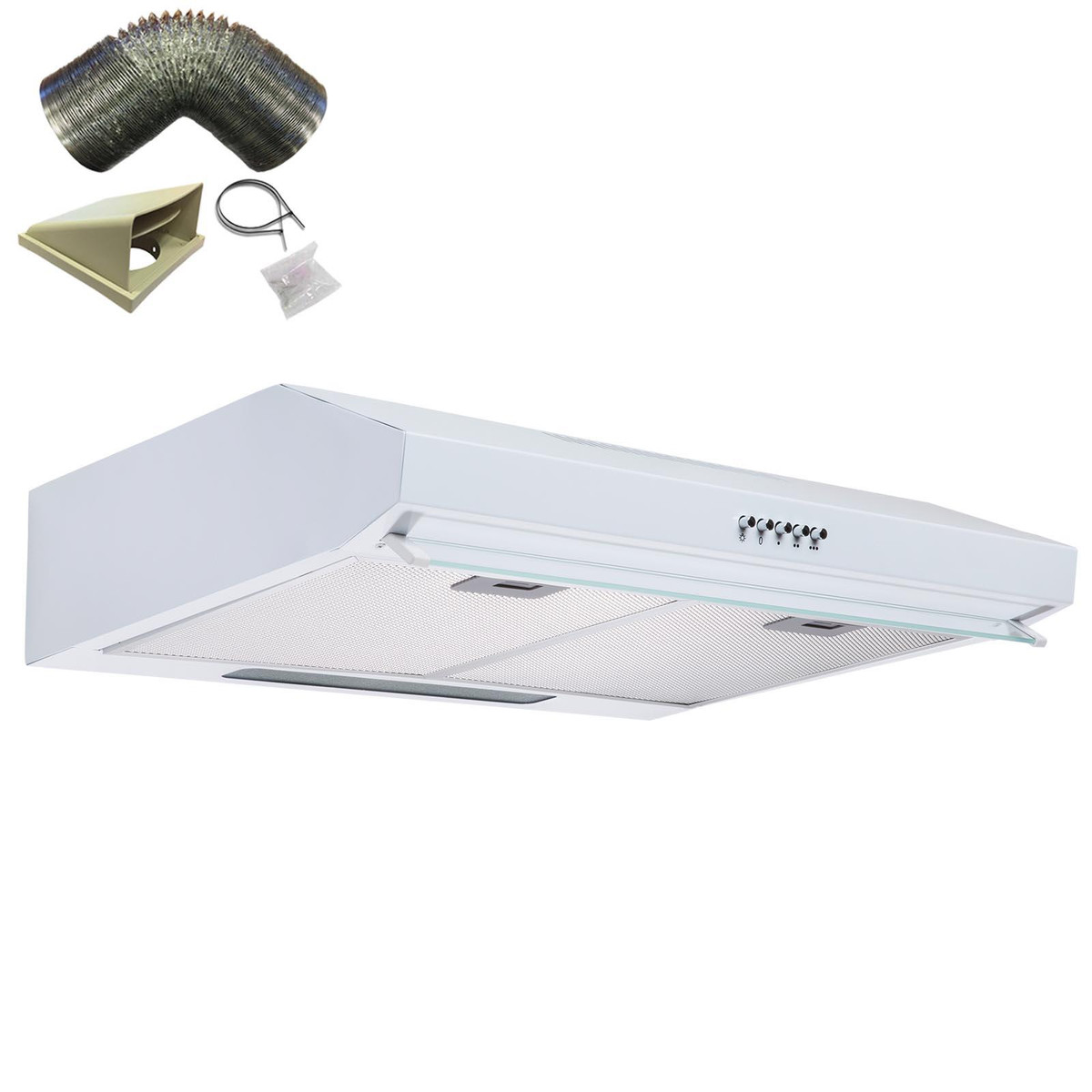 This cooker hood comes with the SIA D3 125mm x 3m ducting kit, so you have everything you need to set it up for external extraction. The ducting kit is used to channel odours, steam and smoke straight outside, keeping your kitchen clean and fresh. The appliance can be used for internal re-circulation however a carbon filter would need to be purchased separately.