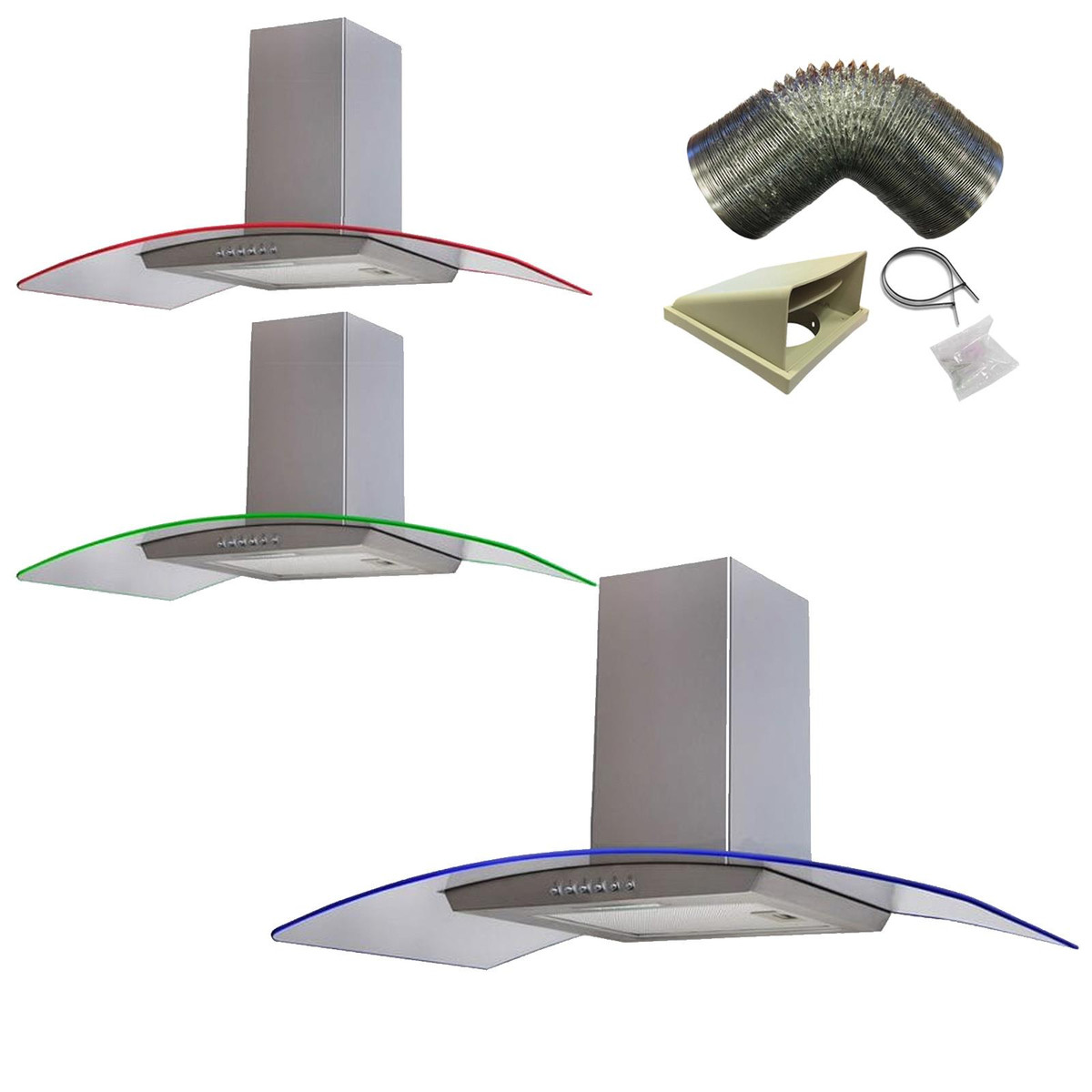 The SIA CPLE90SS is a 90cm cooker hood extractor fan with a brushed stainless steel finish and stylish curved glass. This appliance will help keep your kitchen clean and fresh by removing grease from your cooking vapours and the handy LED downlight will help illuminate your hob. This cooker hood is also equipped with a 3 colour LED edge lit strip, that shines red, blue and green to create the perfect ambiance in your kitchen!