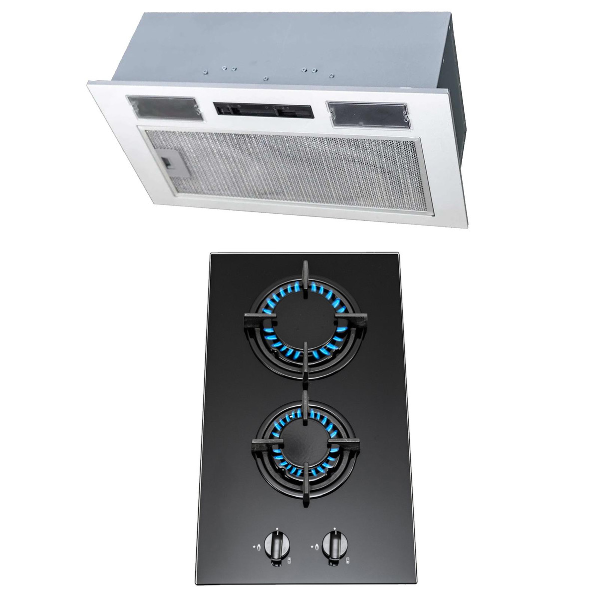The GHG301BL-UC52SI package consists of a 30cm domino gas hob and a 52cm built-in canopy cooker hood. With 2 cooking zones of 2 different sizes, front mounted controls and a sleek attractive black glass finish, the hob has everything you need to cook your meals effortlessly. The cooker hood is small in design but powerful, helping you to keep your kitchen clean and fresh. Being built into a cupboard means this appliance will integrate into your kitchen for a seamless and discreet look. This set is perfect for those looking for high quality appliances to fit into a small space, such as student accommodation or caravans.