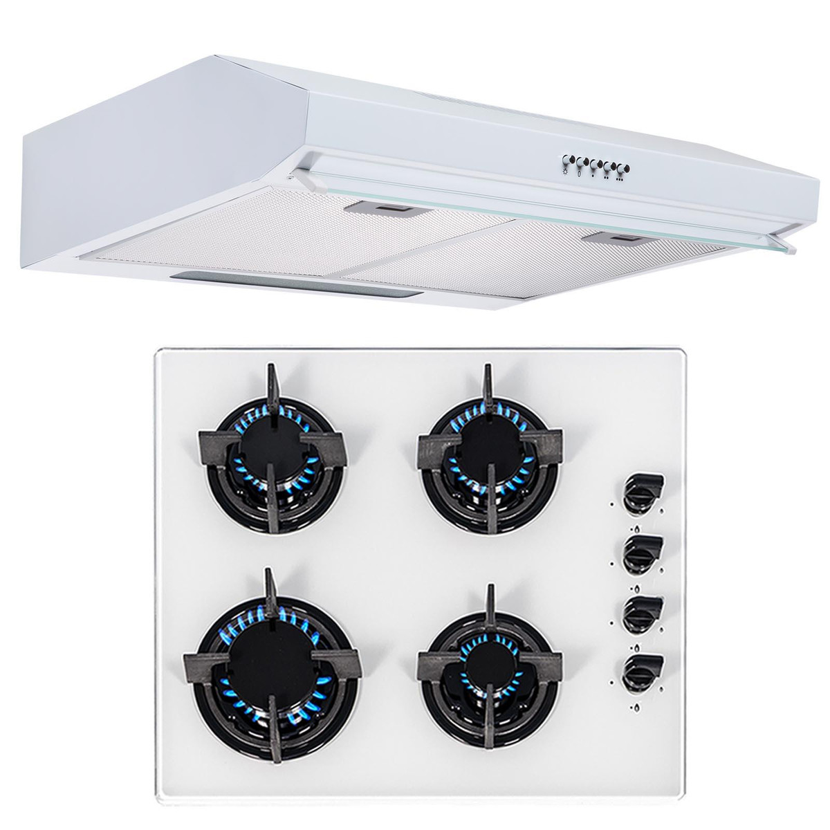 The SIA GHG602WH-VSR60WH package contains a 4 burner black glass hob with a matching slimline visor cooker hood. The hob has built-in safety features and an elegant design, the stunning black safety glass is not only extremely durable and tough but also adds a modern look to any kitchen. The cooker hood is small yet powerful helping you keep your kitchen clean and fresh and has a simplistic design that will fit in with your kitchens décor.