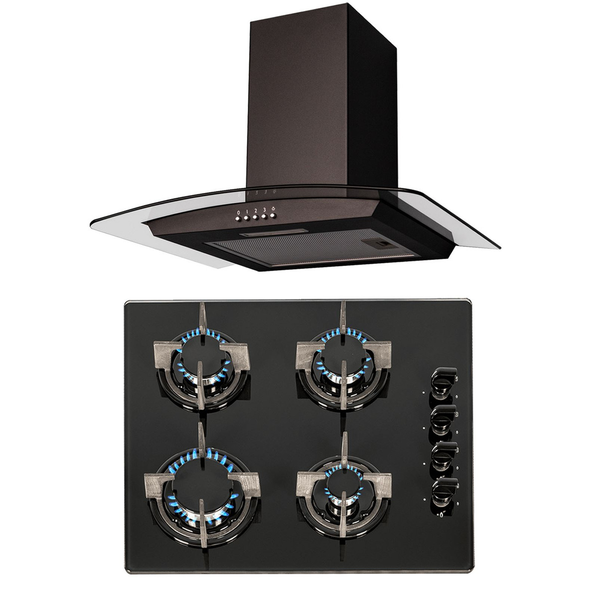 The SIA GHG602BL-CGH60BL pack contains a 4 burner black glass hob with a matching curved glass cooker hood. The hob has built-in safety features and an elegant design, the stunning black safety glass is not only extremely durable and tough but also adds a modern look to any kitchen. The cooker hood is small yet powerful helping you keep your kitchen clean and fresh and has a simplistic design that will fit in with your kitchens décor.