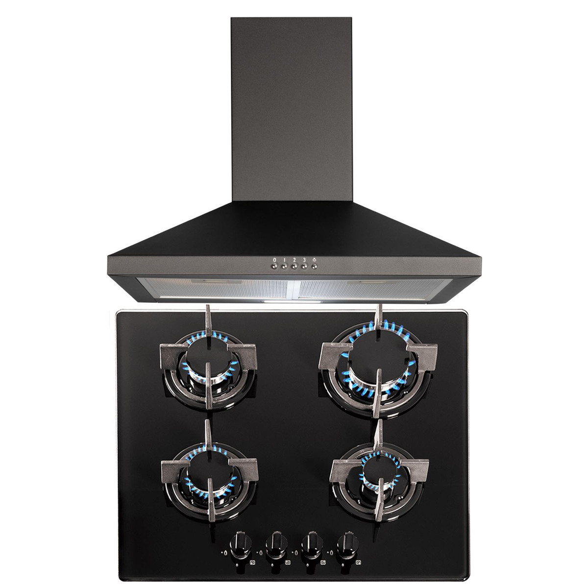 The SIA GHG603BL-CHL60BL pack includes a 4 burner black gas on glass hob and a 60cm pyramid-style chimney cooker. The hob has built-in safety features and an elegant design, the stunning black safety glass is not only extremely durable and tough but also adds a modern look to any kitchen. The cooker hood is small but very powerful helping you keep your kitchen clean and fresh.