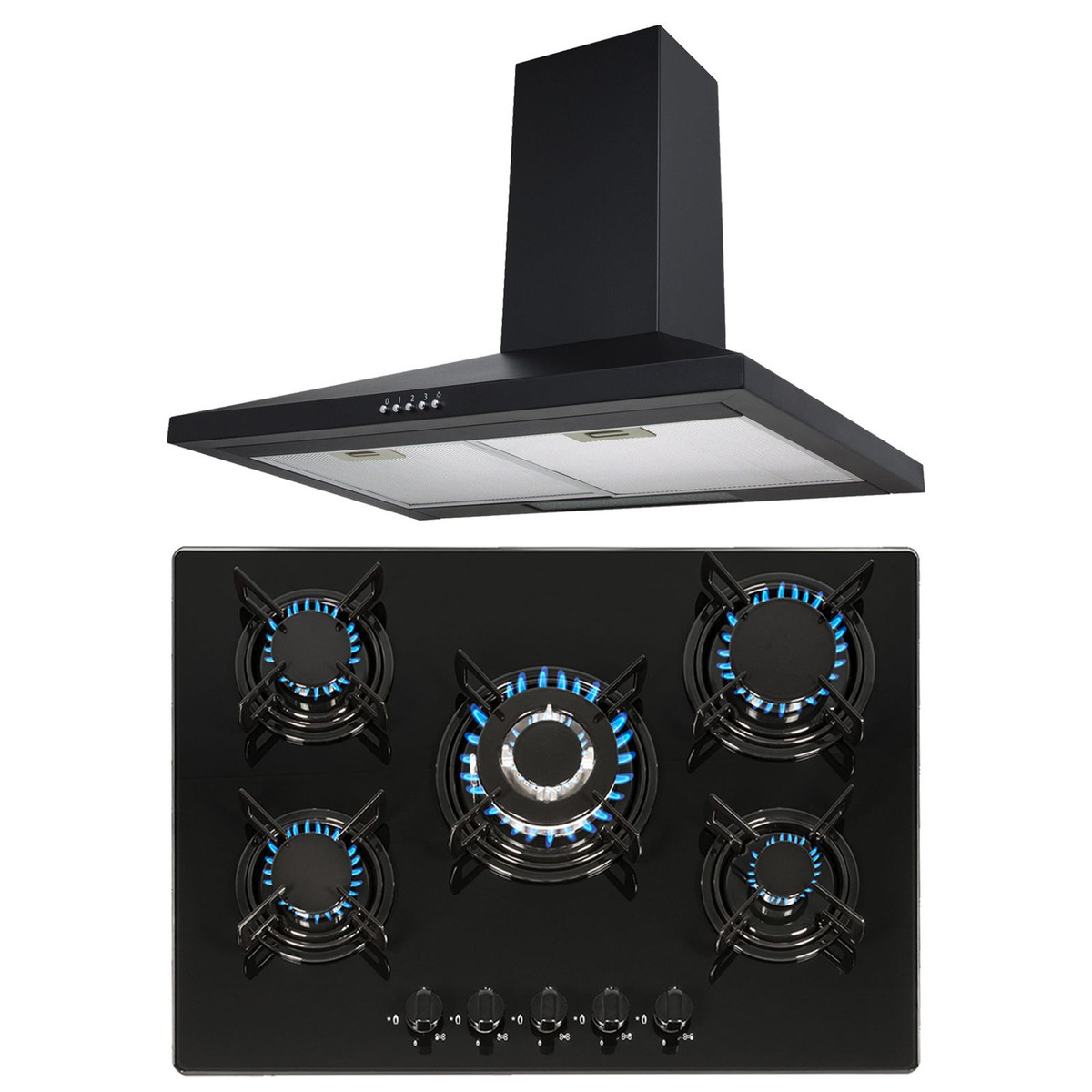 This is the GHG713BL-CHL70BL pack from SIA, a hob and hood duo that is bound to impress. If you are looking for a 70cm black, 5 burner gas hob that has an elegant glass design and built-in safety features, then the GHG713BL is the hob for you. With removable pan stands for easy cleaning and a wok burner for high-intensity cooking this appliance is perfect for any household. To complete this pack we have the 70cm CHL70BL cooker hood with a powerful single fan motor and 3 variable speed settings for any type of cooking.