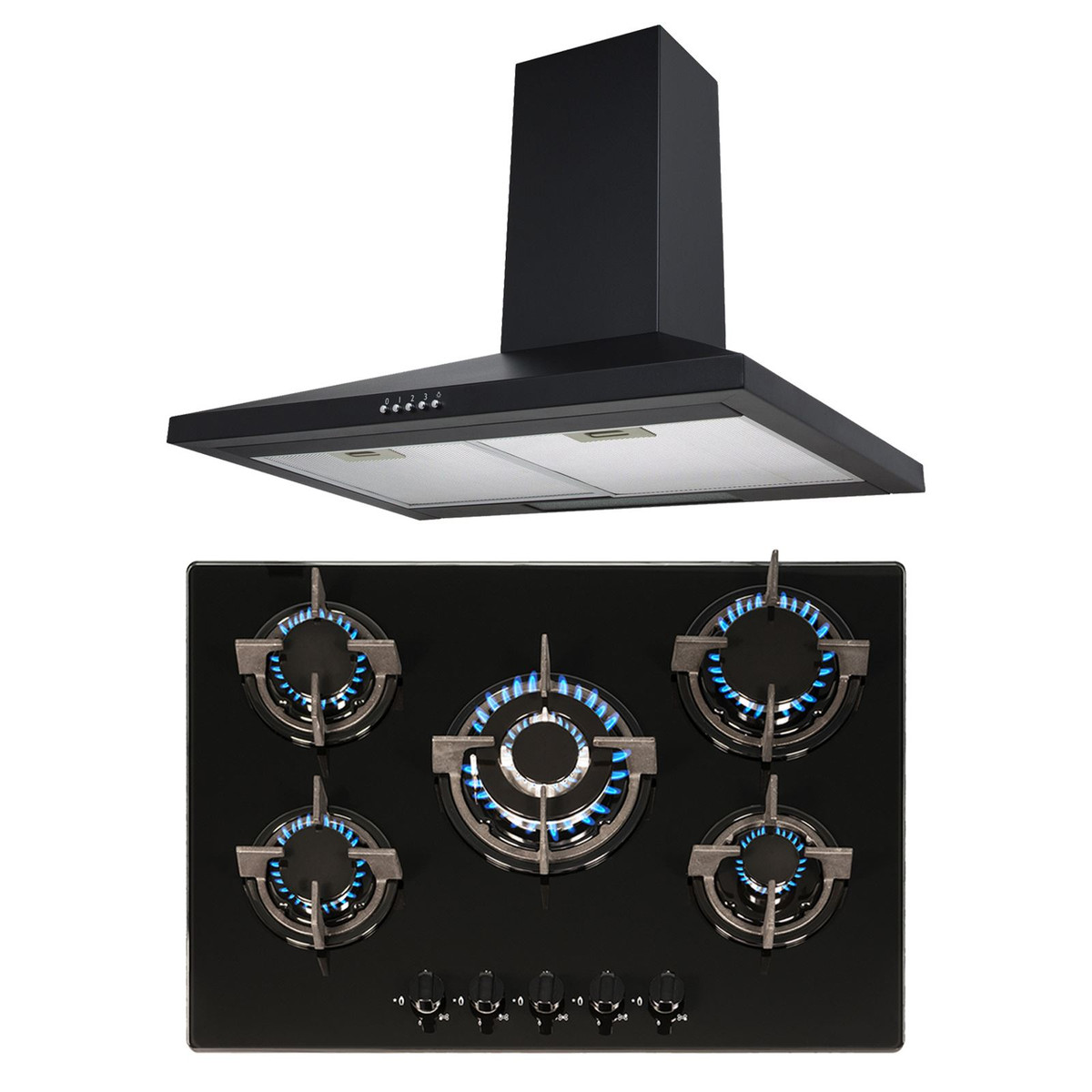 This GHG703BL-CHL70BL package is a hob and hood duo that is bound to impress. If you are looking for a 70cm black, 5 burner gas hob that has an elegant glass design and built-in safety features look no further. With removable cast iron pan stands for easy cleaning and a wok burner for high-intensity cooking this appliance is perfect for any household. To complete this pack we have the 70cm cooker hood with a powerful single fan motor and 3 variable speed settings for any type of cooking.