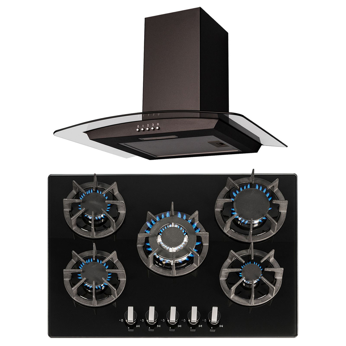 The SIA R8-CGH70BL package comprises of a beautifully designed 5 burner gas on glass hob and a 70cm curved glass cooker. These two items have been selected as they will complement each others design and look wonderful in any kind of kitchen. The R8 features heavy duty cast iron supports that can be removed for easy cleaning and the cooker hood has 3 speeds and a powerful 400m³/hour extraction rate.