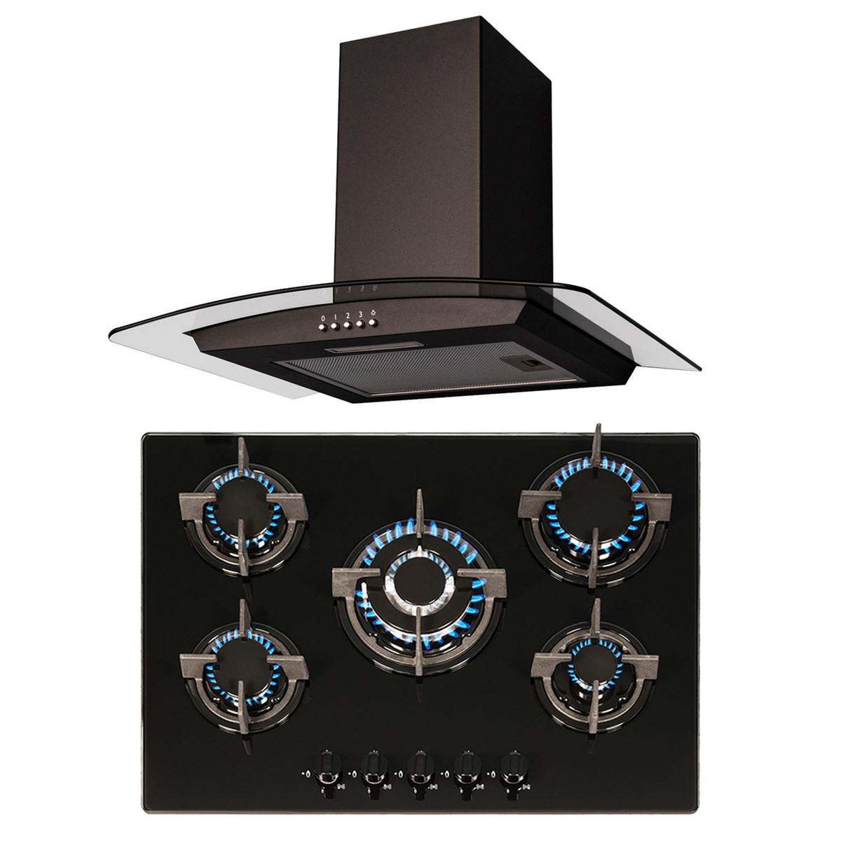 The GHG703BL-CGH70BL package contains a 70cm 5 burner gas on glass hob and curved glass cooker hood from SIA, our in-house range of un-branded kitchen appliances. The gas hob has an elegant glass design and built-in safety features. With removable heavy-duty cast iron pan stands for easy cleaning and a wok burner for high-intensity cooking this appliance is great for any household. The cooker hood is both stylish and functional, with 3 speed settings and a LED downlight this simplistic hood is perfect for any kitchen.