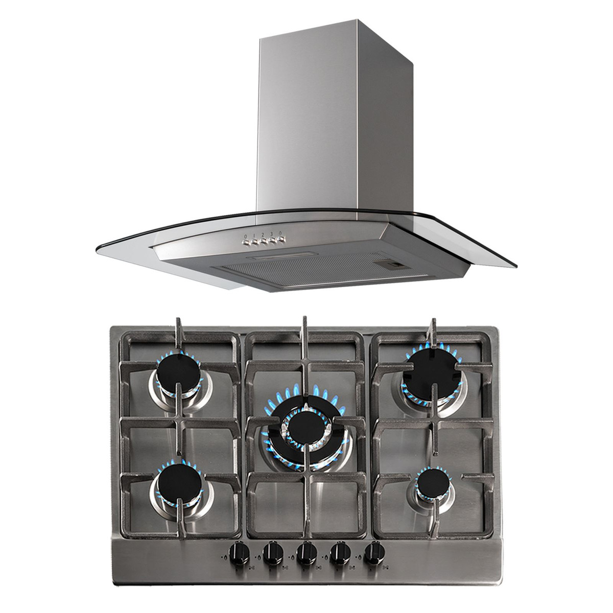 The SSG701SS-CGH70SS pack contains a 5 burner gas hob finished in stainless steel and to match, a 70cm cooker hood with curved glass. The hob is designed with cutting-edge features to ensure safety, convenience and flexibility, so you can take your culinary creations to new heights. The cooker hood has a sleek curved glass design, with performance that is sure not to disappoint. SIA is our in-house range of kitchen appliances that provides high quality at an affordable cost.