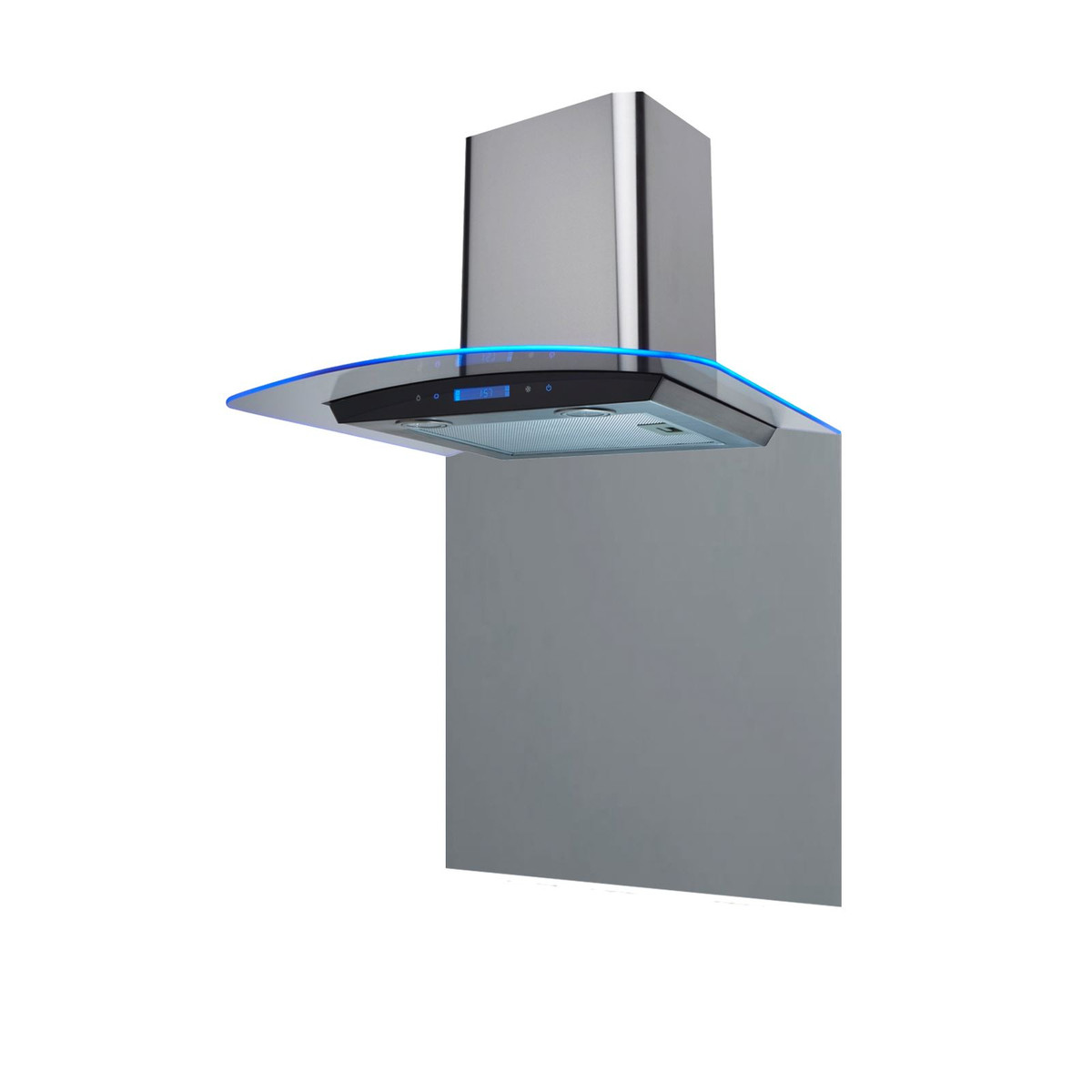 The CPTE61SS-SPC60GY package by SIA features a stunning 60 cm curved glass cooker hood in stainless steel and curved glass splashback in grey. The sleek stainless steel 60cm cooker hood has a stylish red, blue and green LED edge lighting design to add a fantastic look to your kitchen, coupled with 2 LED lamps to create a bright light to your cooking area and giving greater visibility to the pans on your hob below. The splashback is made from toughened safety glass to ensure it can withstand both gas and electric hobs. The curvature of the glass fits perfectly together ensuring a seamless design.