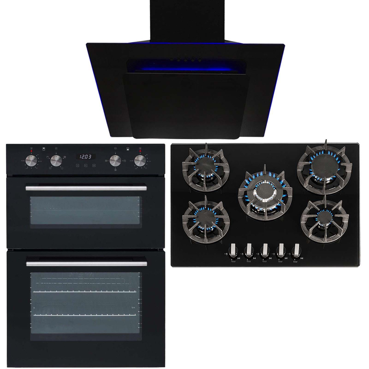 If you are looking for a double oven, gas hob and cooker hood package that oozes style and combines practicality with fantastic pricing, then look no further. The DO102-R8-AGE71BL super saver bundle from SIA is sure to tick all of your boxes. Combining a modern, built-in double oven with an astonishing black gas hob and mood-lit cooker hood will make your kitchen look fantastic, as well as provide you with exceptional functionality. The R8 is a powerful hob with cast iron supports and a wok burner to tackle even the most strenuous cooking scenario and the multi-function double oven with digital display has plenty of space to cook your favourite dishes day in, day out.