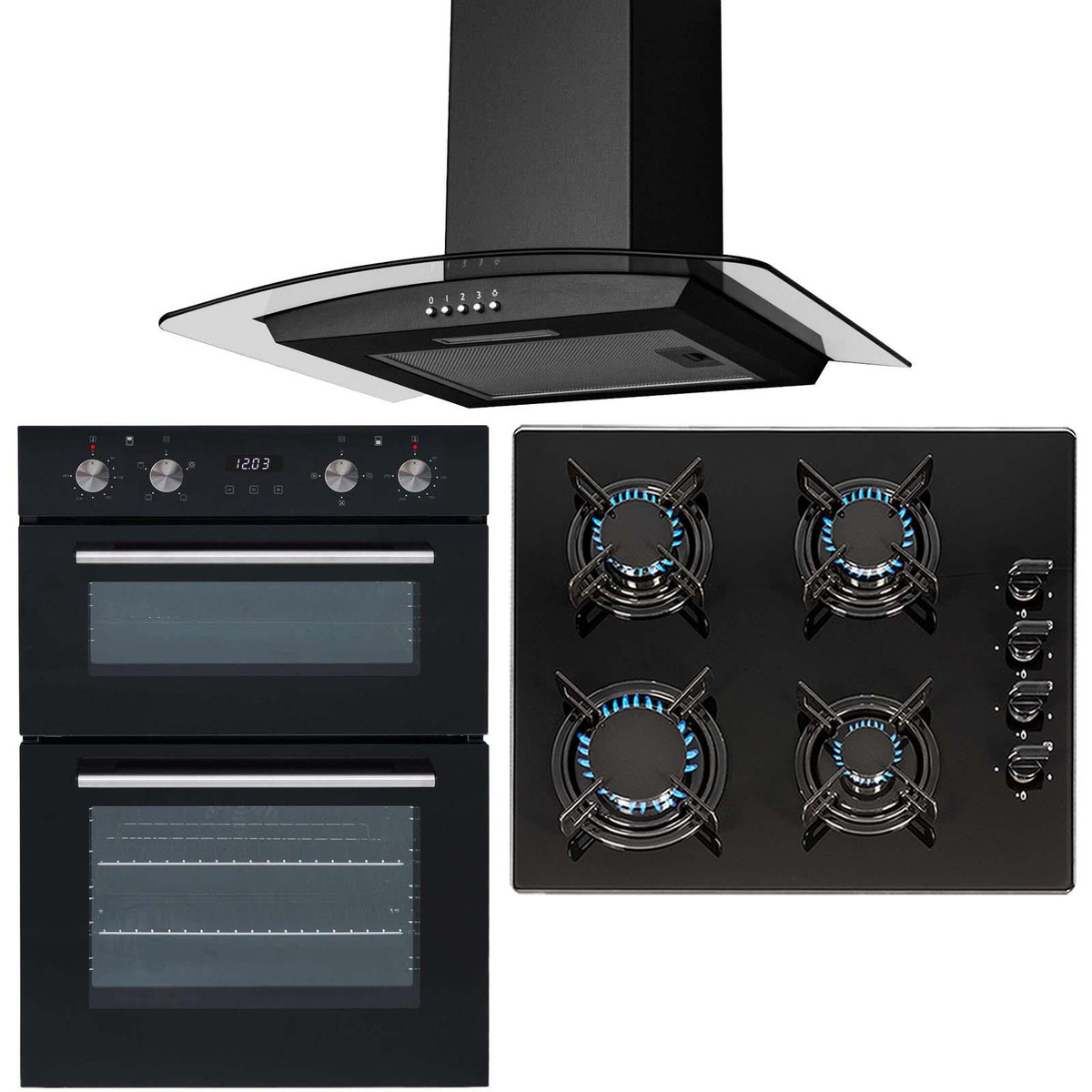 The SIA DO102-GHG612BL-CGH60BL package contains a built in double electric oven, 60cm 4 burner gas hob and a curved glass extractor fan. The oven has an energy rating of ‘A’, which will consume less electricity and help keep your bills low. With built-in safety features and an elegant design, the stunning hob with black safety glass is not only extremely durable and tough but also adds a modern look to any kitchen. The cooker hood is small but powerful helping you keep your kitchen clean and fresh and has a simplistic design that will fit in with your kitchens décor.