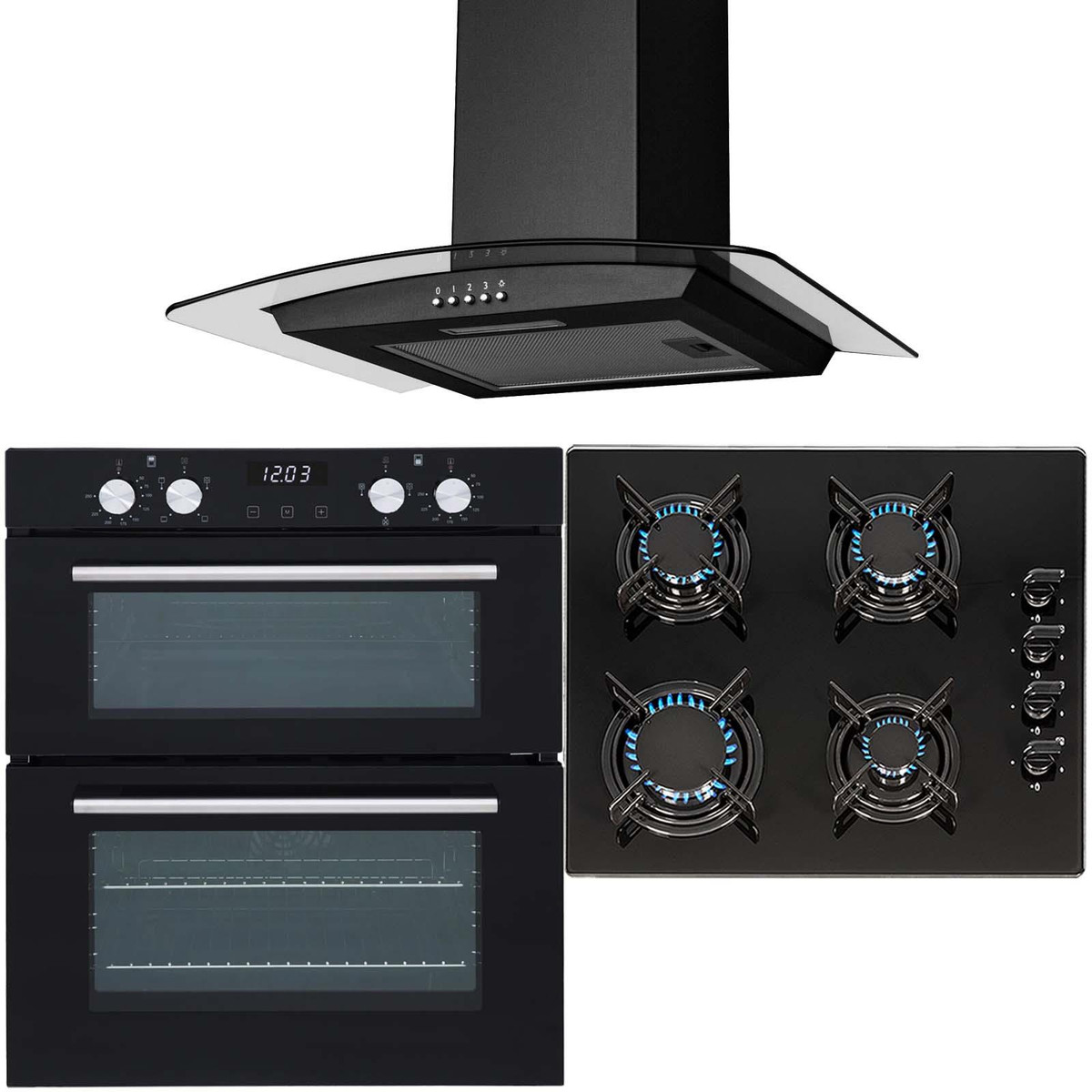 The SIA DO101-GHG612BL-CGH60BL pack includes a double true fan electric oven, 60cm 4 burner black glass hob and a 60cm curved glass cooker hood. The DO101 has an energy rating of ‘A’, which will consume less electricity and help keep your bills low. With built-in safety features and an elegant design, the stunning hob with black safety glass is not only extremely durable and tough but also adds a modern look to any kitchen. The cooker hood is small but powerful helping you keep your kitchen clean and fresh and has a simplistic design that will fit in with your kitchens décor.