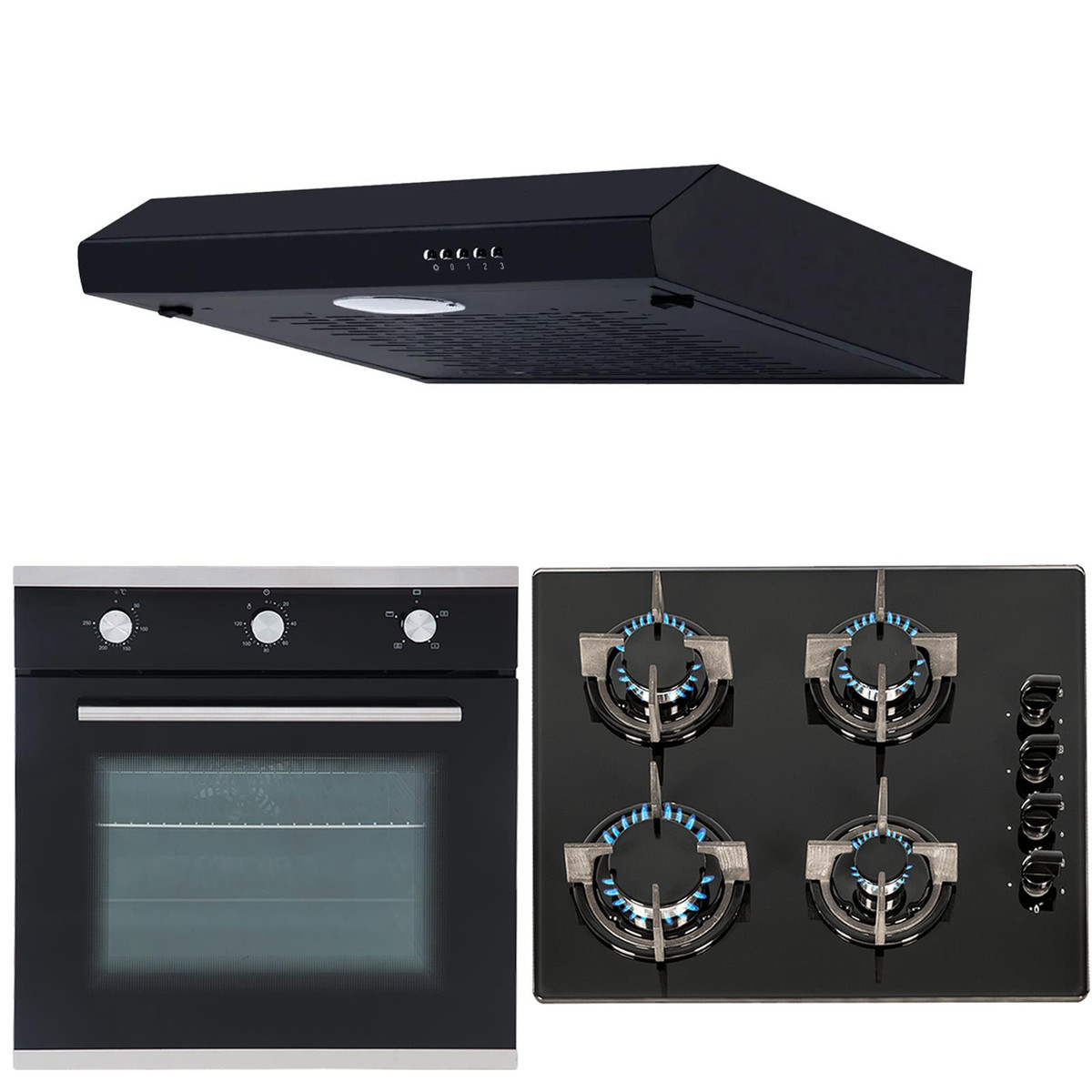 The SIA SO101-GHG602BL-STH60BL package includes a single true fan electric oven, 4 burner black gas on glass hob and to match, a 60cm slimline visor cooker hood. The SO101has an energy rating of ‘A’, which will consume less electricity and help keep your bills low. Having built-in safety features and an elegant design, the stunning hob with black safety glass is not only extremely durable and tough but also adds a modern look to any kitchen. The cooker hood is small but powerful helping you keep your kitchen clean and fresh and has a simplistic design that will fit in with your kitchens décor.