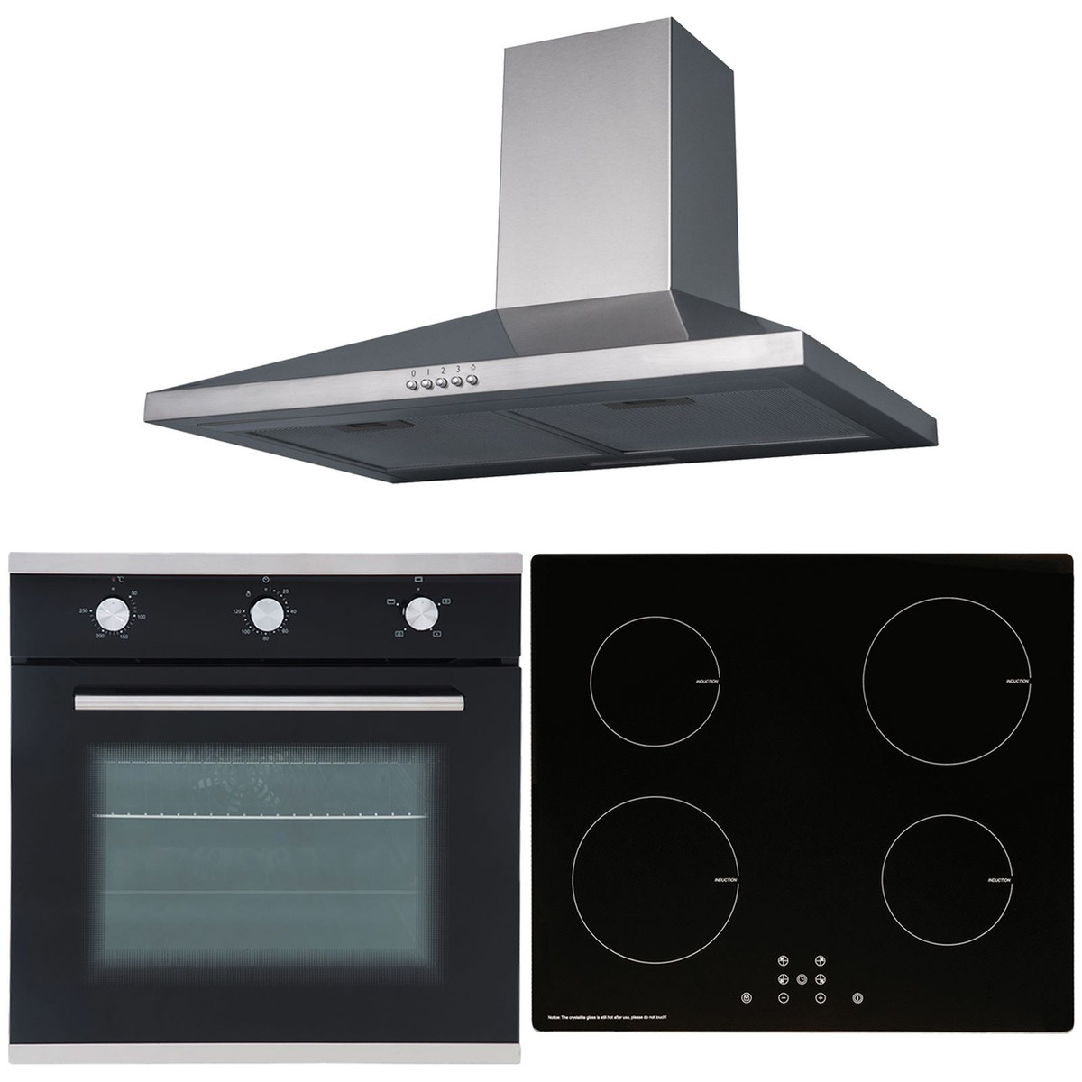 The SO101-INDH61BL-CHL60SS package includes a single true fan electric oven, 4 zone plug in touch control induction hob and a 60cm stainless steel chimney cooker hood. The SO101 has an energy rating of 'A', which will consume less electricity and with the hob having intelligent induction technology this helps to keep your bills to a minimum. The cooker hood is small but powerful helping you keep your kitchen clean and fresh and has a simplistic design that will fit in with your kitchens décor.