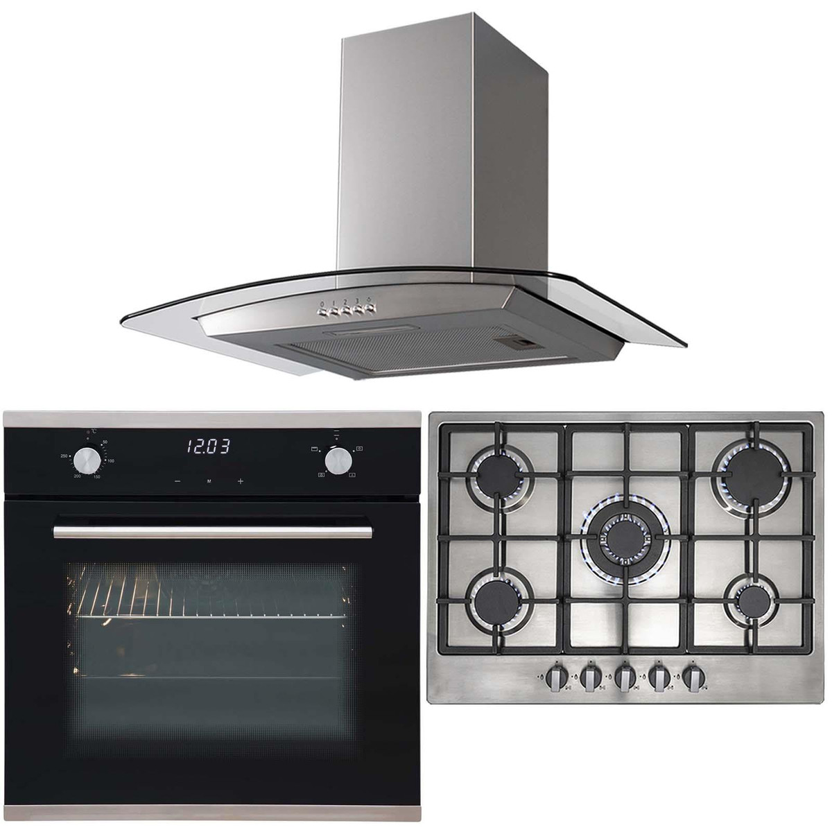 The SO103-R6-CGH70SS package contains a single touch control electric fan oven in black, a 70cm stainless steel 5 burner gas hob and to match, a curved glass cooker hood. The oven being not only a true fan, but fully programmable means food will cook quickly, evenly and efficiently ensuring creating tasty meals is a breeze. The hob is designed with cutting-edge features to ensure safety, convenience and flexibility, so you can take your culinary creations to new heights. The cooker hood has a sleek curved glass design, with performance that is sure not to disappoint. SIA is our in-house range of kitchen appliances that provides high quality at an affordable cost.