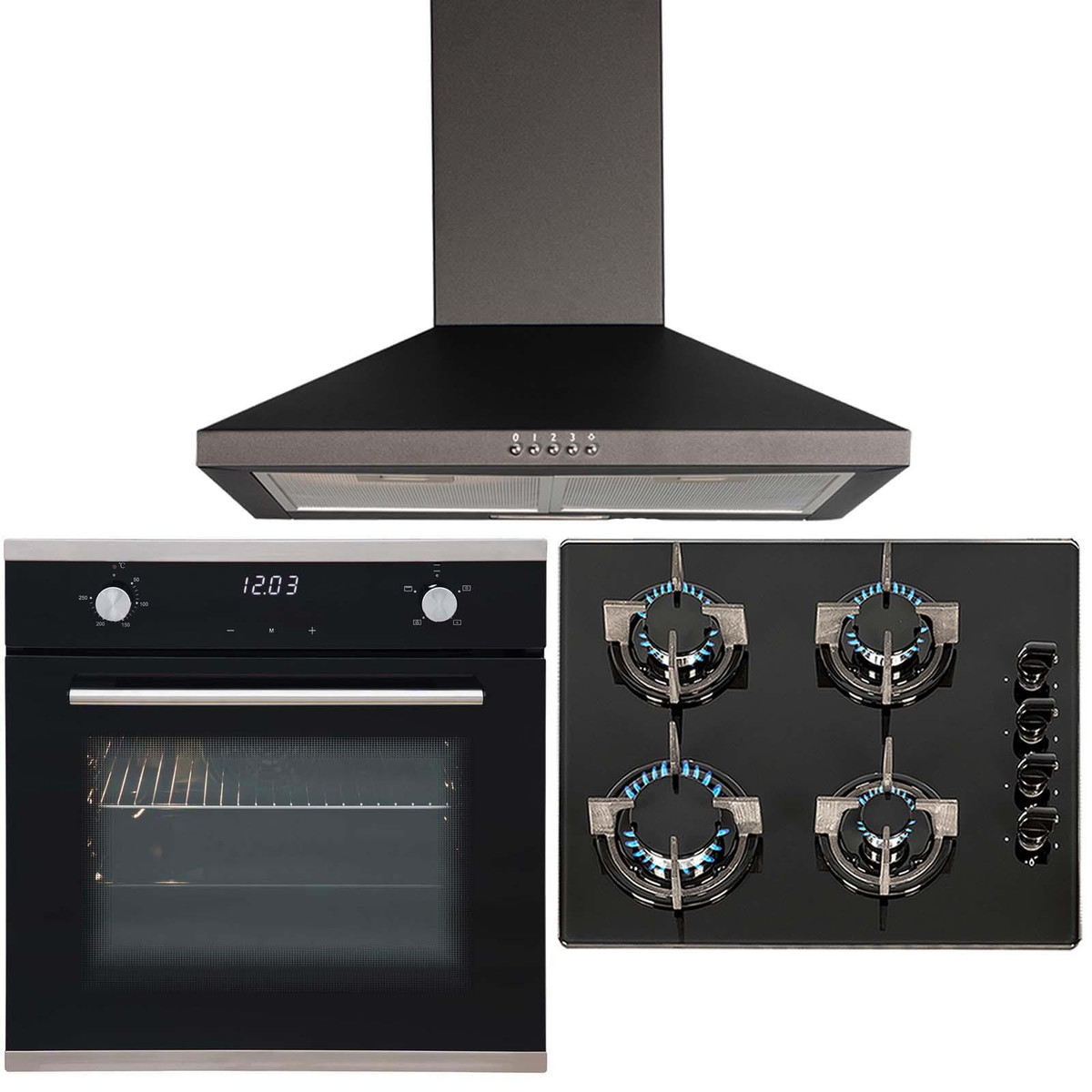 The SO103-GHG602BL-CHL60BL pack includes a single touch control electric true fan oven, 4 burner black gas on glass hob and a chimney cooker hood. The oven is multi functional for all your cooking needs and also has a digital timer. The hob with built-in safety features such as the flame failure safety device and an elegant design, has black safety glass so is not only extremely durable and tough but also adds a modern look to any kitchen. The cooker hood is small but powerful helping you keep your kitchen clean and fresh and has a simplistic design that will fit in with your kitchens décor.
