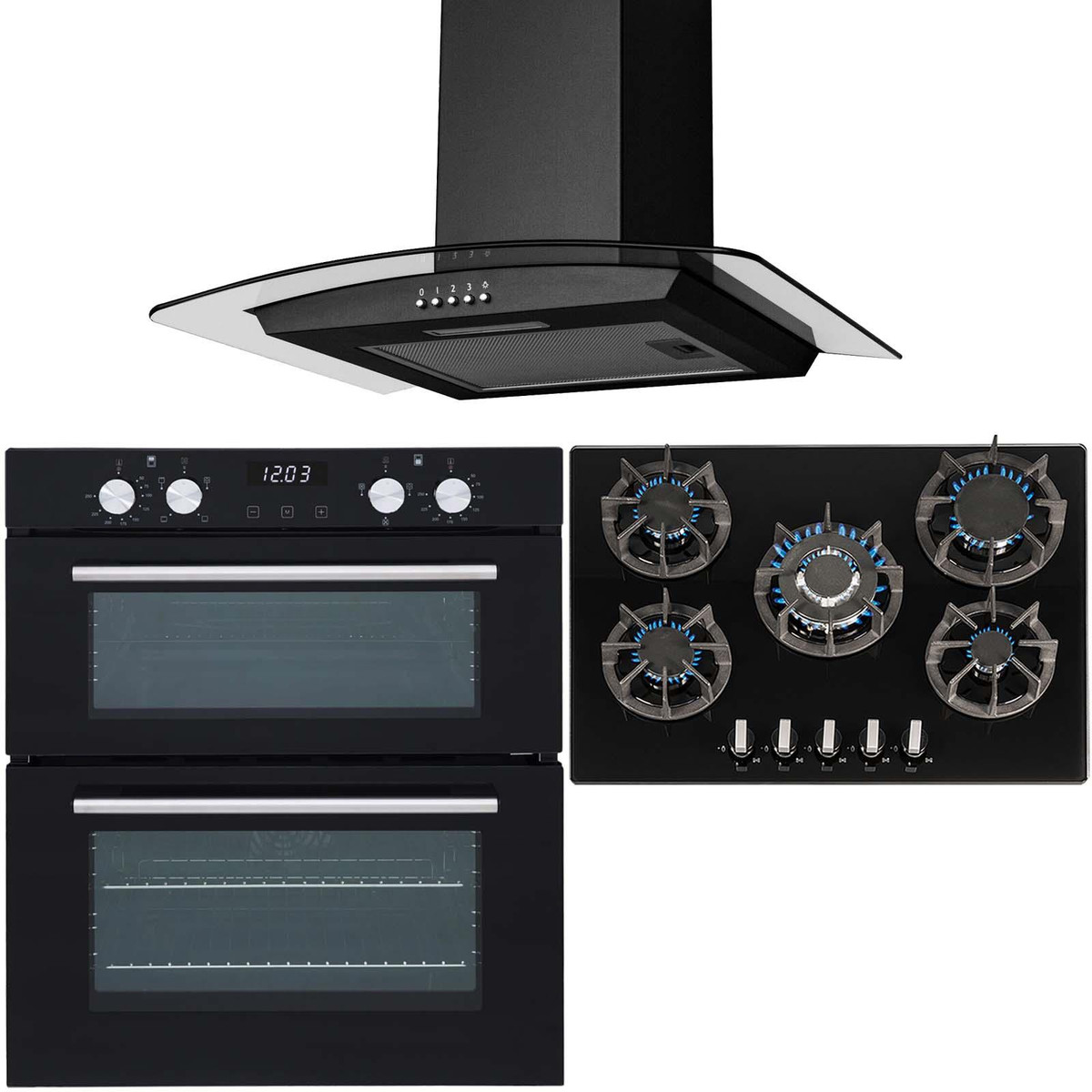 If you are looking for an appliance pack that combines high functionality with a modern stylish design, then the SIA DO101-R8-CGH70BL package is the choice for you. This set is made up of a fully programmable true fan double oven, sleek black glass hob with cast iron supports and a stylish curved glass cooker hood. These items look superb when combined together and will make any kitchen stand out from the crowd!