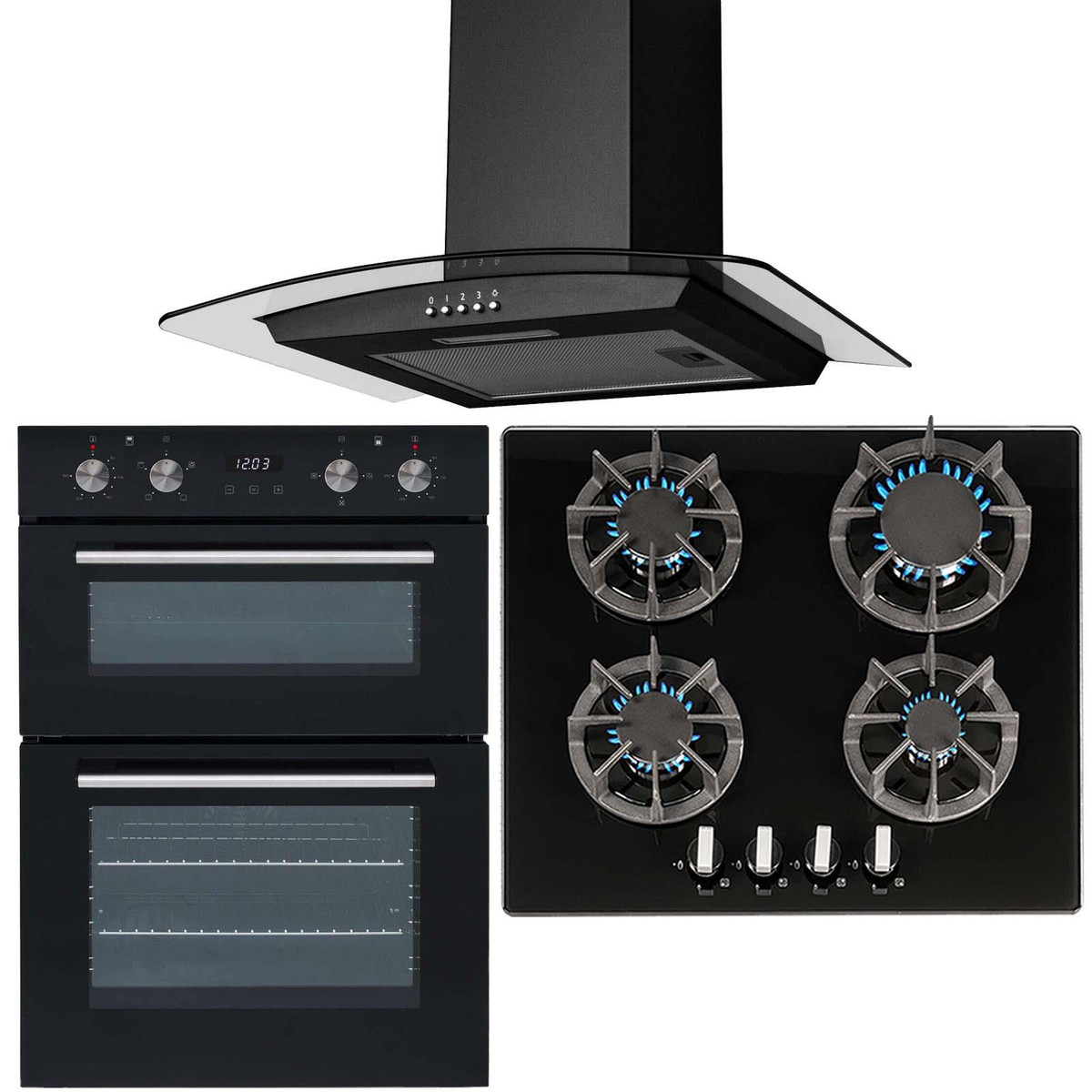 The SIA DO102-R7-CGH60BL saver package includes a double electric true fan oven, 4 burner black gas on glass hob and a curved glass cooker hood. The oven has 4 easy-to-use dials to control the function and temperature, with separate push buttons to operate the timer. The hob has built-in safety features and an elegant design, the stunning black safety glass is not only extremely durable and tough but also adds a modern look to any kitchen. The cooker hood is small yet powerful helping you keep your kitchen clean and fresh and has a simplistic design that will fit in with your kitchens décor.