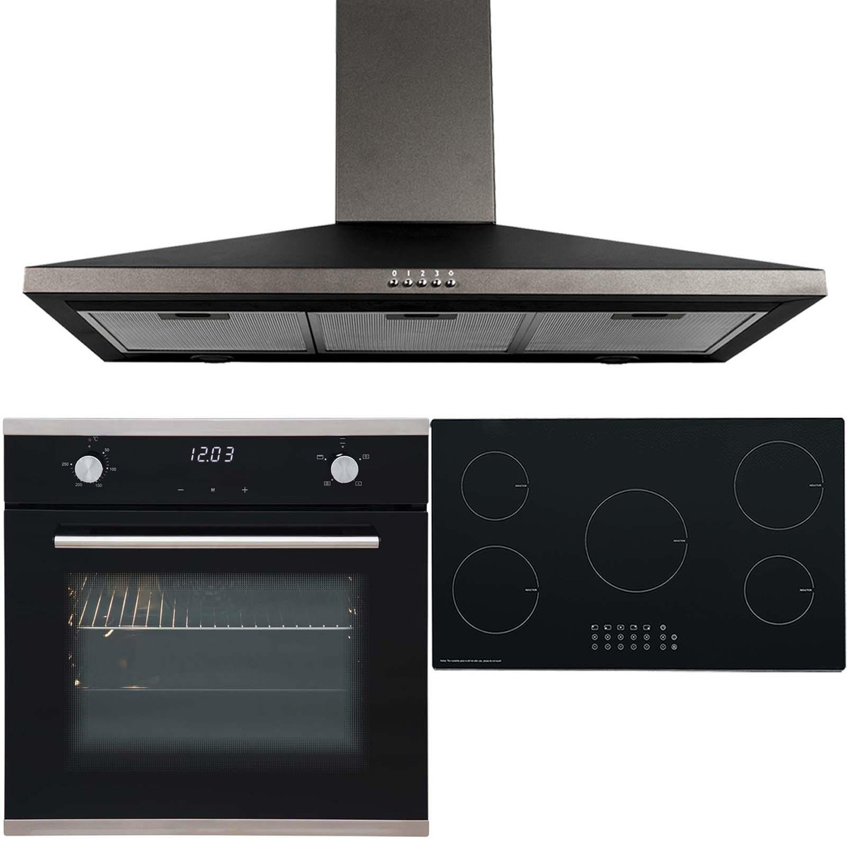The SO103-INDH90BL-CHL90BL super saver package combines a touch control 60cm single electric oven with a 90cm 5 zone induction hob and a chimney cooker hood. The single oven has an 'A' energy rating to help keep your electrical bills low and has an attractive black glass finish with stainless steel trim. The 5 zone induction hob comes with built-in safety features and has plenty of space for all of your cooking needs. The traditional chimney cooker hood has 2 x LED downlights to help illuminate the hob and a powerful motor to hep yo keep your kitchen clean and fresh.