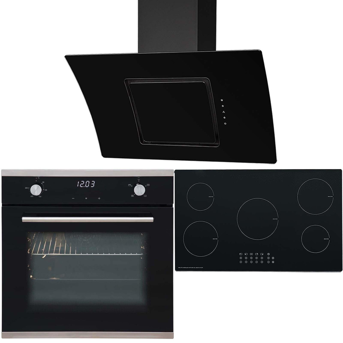 The SO103-INDH90BL-AT91BL super saver package combines a touch control 60cm single electric oven with a 90cm 5 zone induction hob and a curved glass angled cooker hood. The single oven has an 'A' energy rating to help keep your electrical bills low and has an attractive black glass finish with stainless steel trim. The 5 zone induction hob comes with built-in safety features and has plenty of space for all of your cooking needs. The hood has an elegant curved glass angled design that will add a modern look to any kitchen. The soft touch controls are located on the side for easy access and it comes with 2 x LED downlights to help illuminate the hob. Angled cooker hoods are the perfect choice for those with little headroom. The sloped design and shallower depth mean they do not protrude from the wall as much as other cooker hoods.