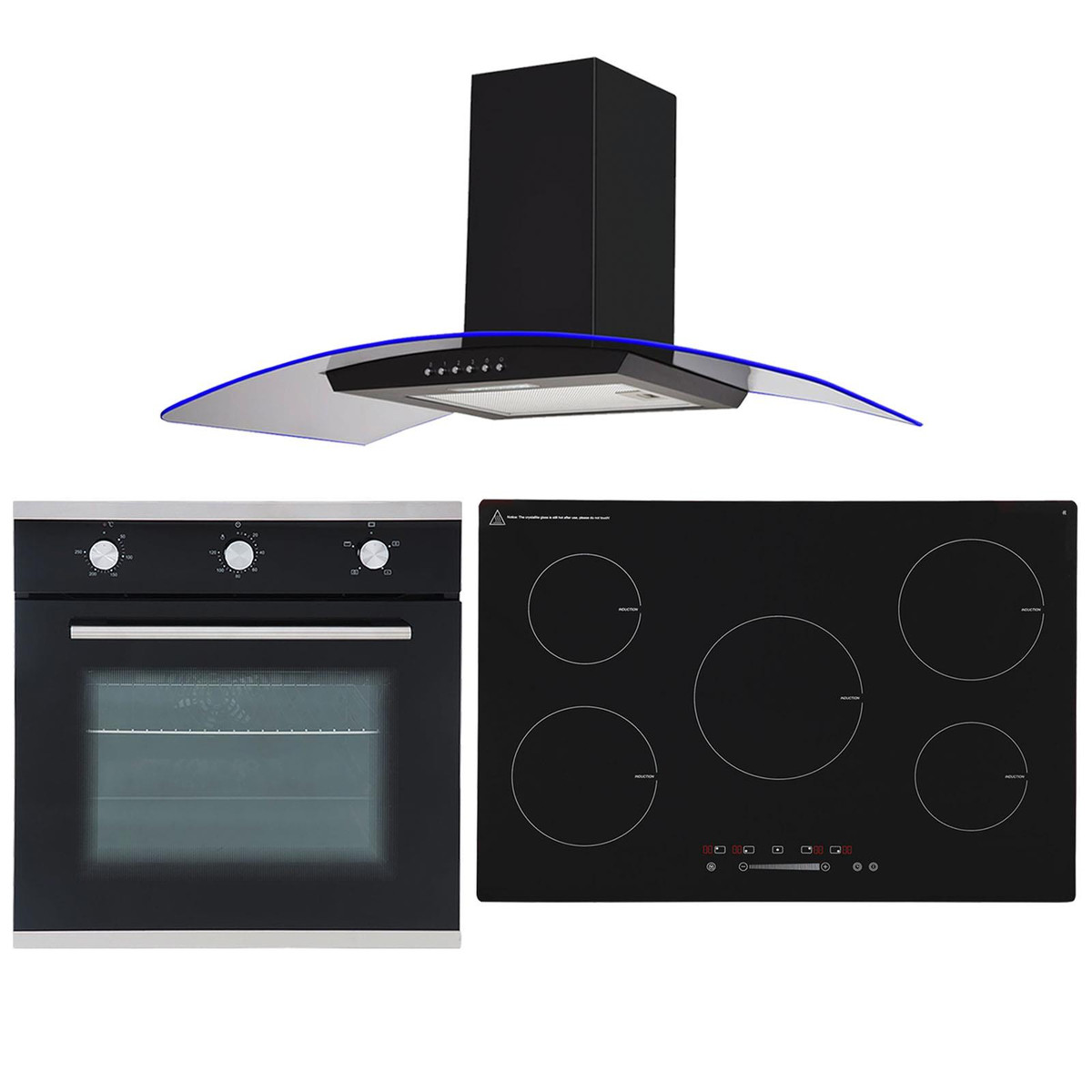 The SO101-INDH90BL-CPLE90BL super saver package combines a 60cm single electric oven with a 90cm 5 zone induction hob and a curved glass cooker hood. The single oven has an 'A' energy rating to help keep your electrical bills low and has an attractive black glass finish with stainless steel trim. The 5 zone induction hob comes with built-in safety features and has plenty of space for all of your cooking needs. The CPLE90BL comes with red, blue and green LED edge lighting that helps you set the perfect ambiance with every use.