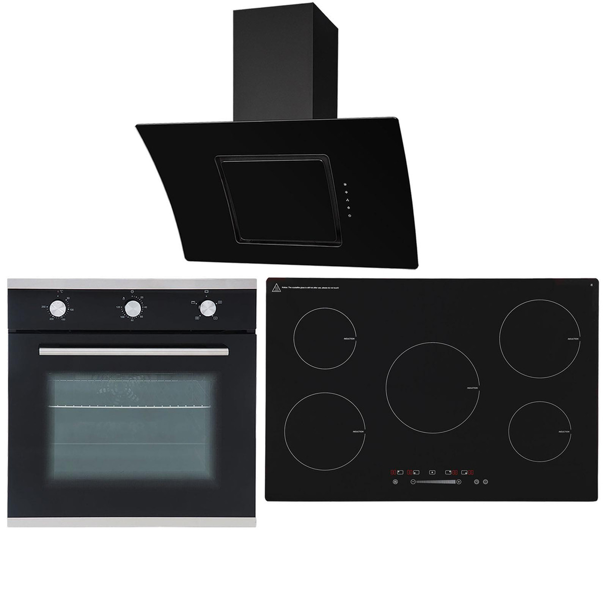 The SO101-INDH90BL-AT91BL super saver package combines a 60cm single electric oven with a 90cm 5 zone induction hob and a curved glass angled cooker hood. The single oven has an 'A' energy rating to help keep your electrical bills low and has an attractive black glass finish with stainless steel trim. The 5 zone induction hob comes with built-in safety features and has plenty of space for all of your cooking needs. The AT91BL has an elegant curved glass angled design that will add a modern look to any kitchen. The soft touch controls are located on the side for easy access and it comes with 2 x LED downlights to help illuminate the hob. Angled cooker hoods are the perfect choice for those with little headroom. The sloped design and shallower depth mean they do not protrude from the wall as much as other cooker hoods.