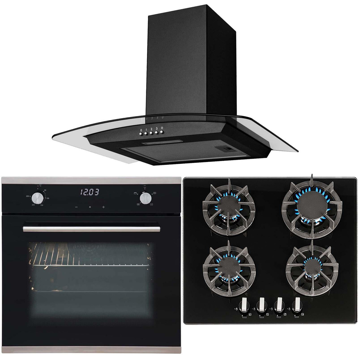 The SIA SO103-R7-CGH60BL pack includes a single touch control electric fan oven, 4 burner black glass gas hob and a curved glass cooker hood. The oven has 2 easy-to-use dials to control the function and temperature, with separate soft touch controls to operate the timer. The hob has built-in safety features and an elegant design, the stunning black safety glass is not only extremely durable and tough but also adds a modern look to any kitchen. The cooker hood is small yet powerful helping you keep your kitchen clean and fresh and has a simplistic design that will fit in with your kitchens décor.