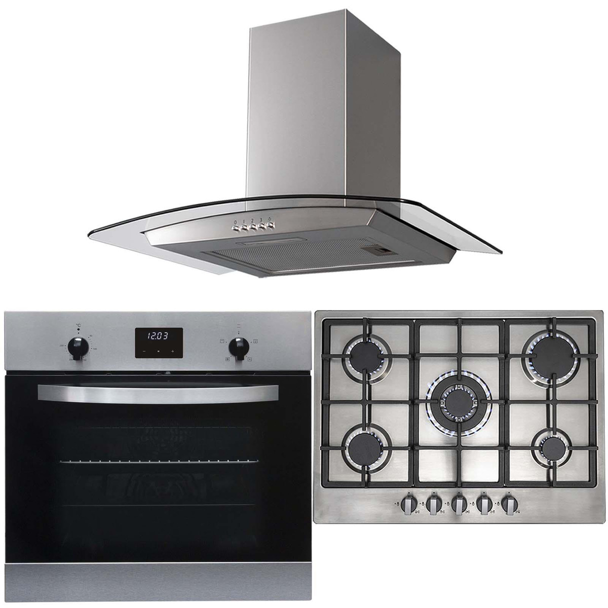 The SIA SO112SS-R6-CGH70SS package consists of a single electric fan oven, a 70cm 5 burner gas hob and a curved cooker hood all finished in brushed stainless steel. The fully programmable oven has plenty of space to cook your favourite foods and the hob has 5 burners for plenty of cooking power. The sleek curved glass cooker hood rounds off the set with its 3 speed settings and LED downlight. These appliances have been chosen as they complement each other perfectly and would look great in any kitchen environment.