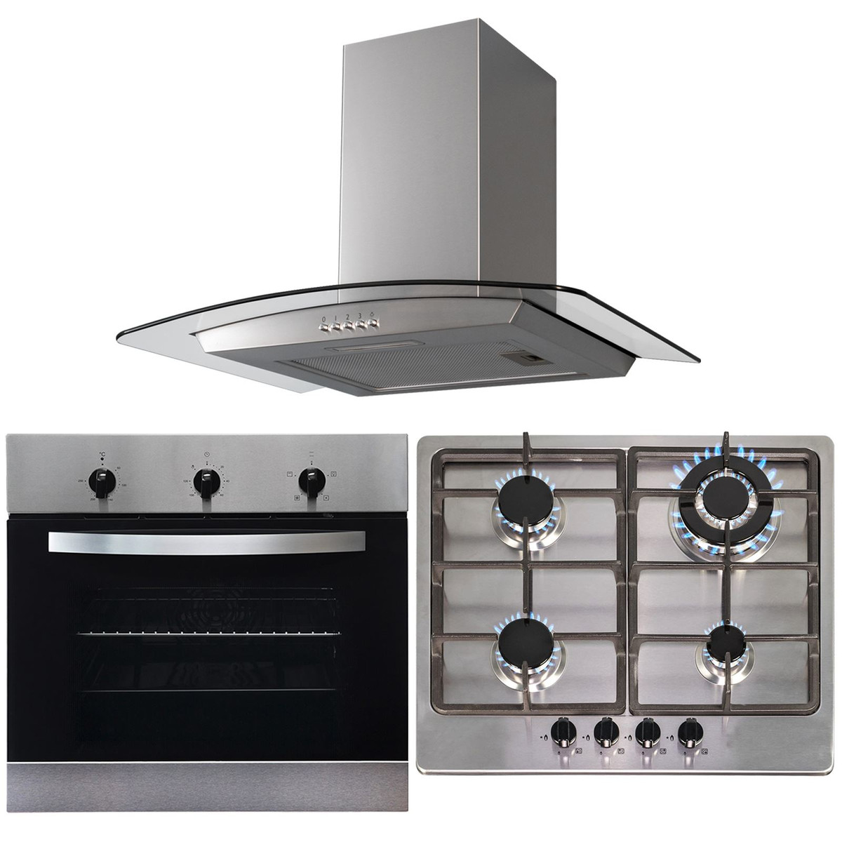 The SO111SS-SSG601SS-CGH60SS pack provides you with a great oven, hob and hood combination for a new kitchen renovation. It comprises of a stylish yet functional single true fan electric oven, 4 burner gas hob and curved glass chimney cooker hood. The gas hob features heavy duty cast iron supports and the sleek curved glass hood will help you keep your kitchen clean whilst illuminating the hob with its LED downlight. SIA is our in-house brand that provides high quality un-branded products to suit any budget.