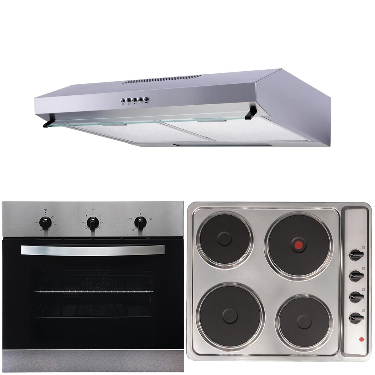The SO111SS-PHP601SS-VSR60SS pack from SIA includes a stylish yet functional, built-in single oven, 4 burner electric solid plate hob and a slimline visor cooker hood. With a modern black glass front and stainless steel accessories the oven will blend in with any kitchen. The VSR60SS boasts a sleek design, finished in stunning stainless steel and clear glass, this cooker hood has been designed with the modern kitchen in mind and is sure to elegantly blend into your decor. SIA believe in manufacturing highly functional and practical appliances at low costs and this package is an absolute must buy.