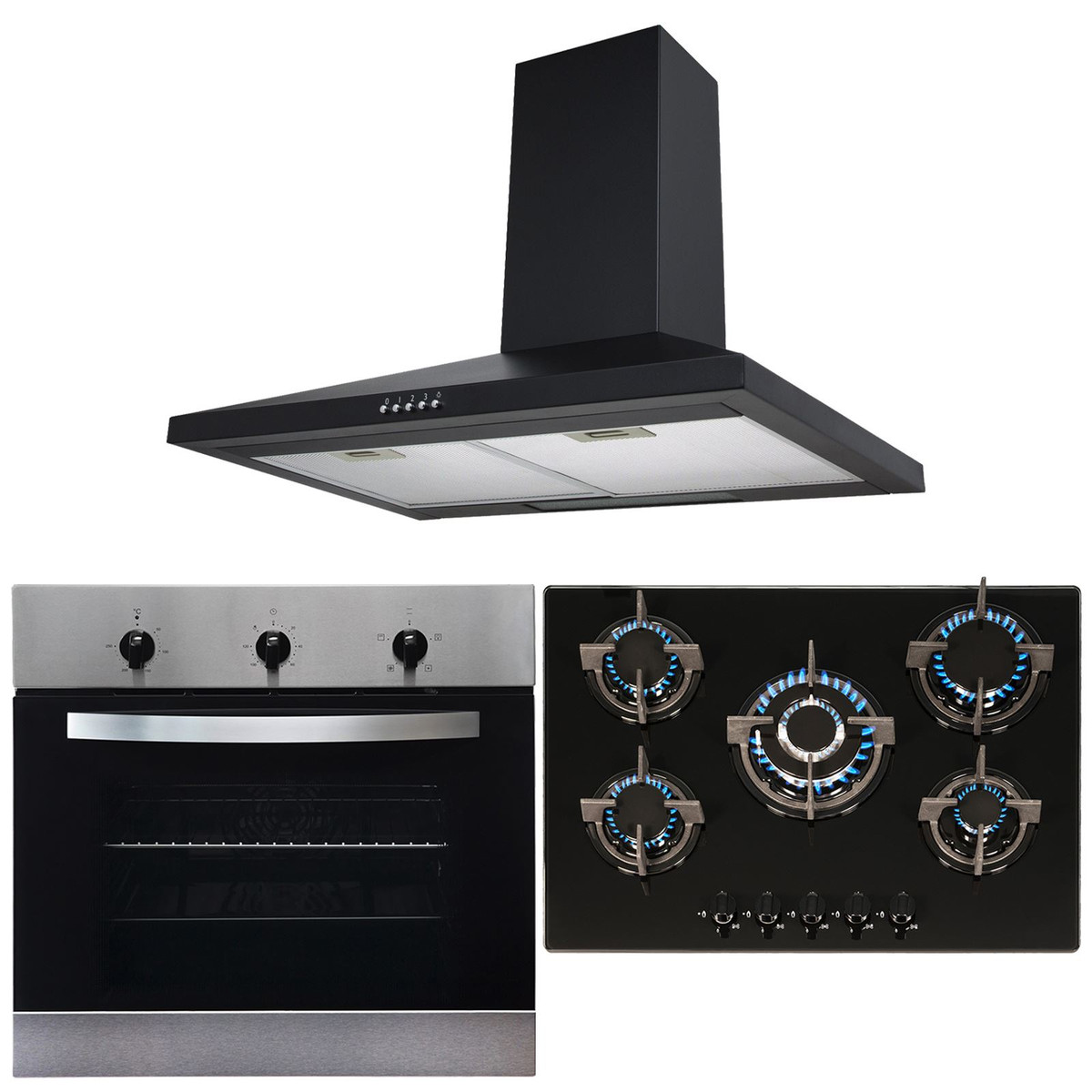 The SO111SS-GHG703BL-CHL70BL is a single true fan oven, 5 burner gas hob and black chimney cooker hood from SIA, our in-house range of un-branded kitchen appliances. The oven has a stylish black glass and stainless steel design and being a true fan oven means it will cook food quickly, evenly and efficiently to ensure creating tasty meals is a breeze! The hob has an elegant glass design and built-in safety features. With removable pan stands for easy cleaning and a wok burner for high-intensity cooking this appliance is perfect for any household. To complete this pack we have the 70cm chimney cooker hood with a powerful single fan motor and 3 variable speed settings for any type of cooking.