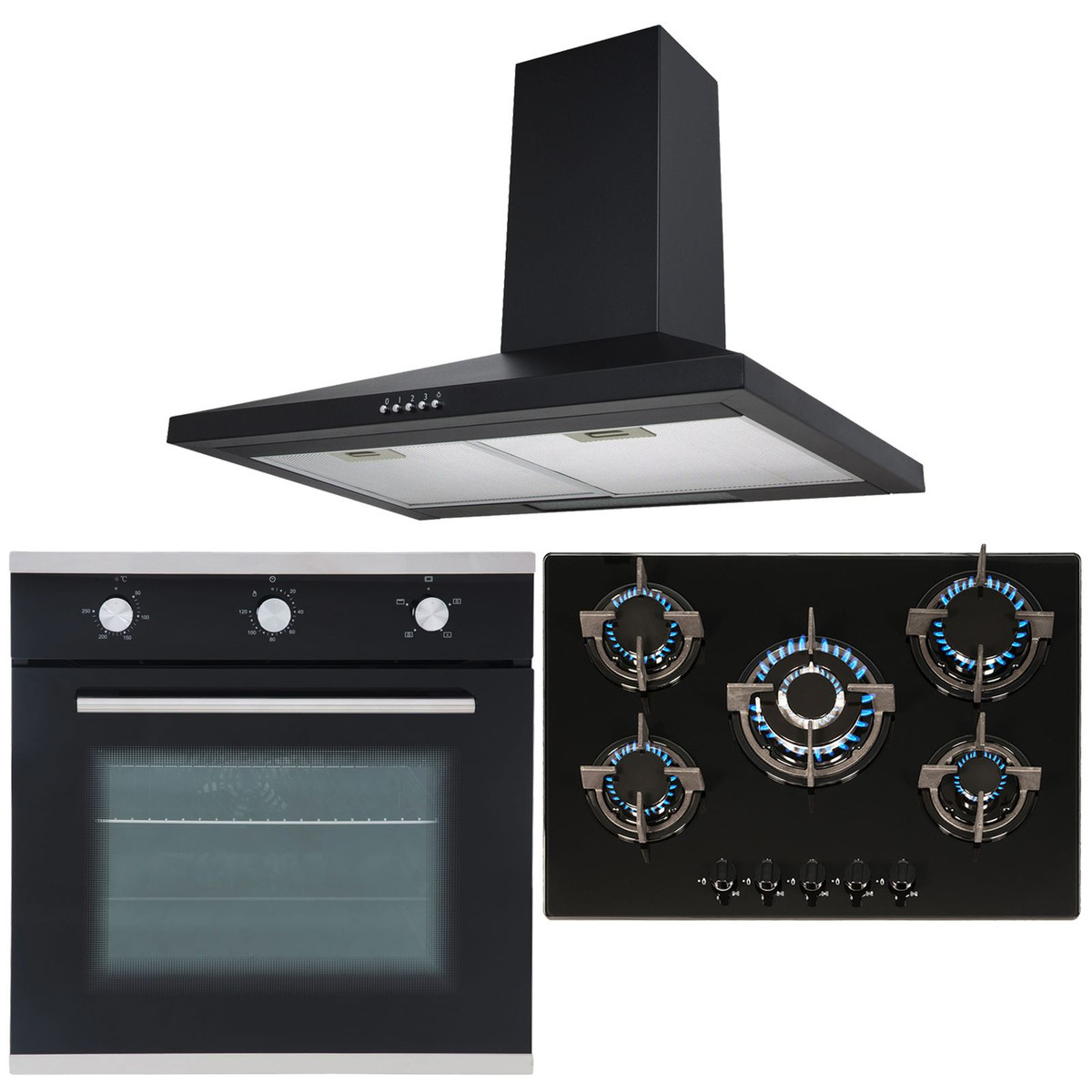 The SO101-GHG703BL-CHL70BL is a single true fan oven, 5 burner gas hob and pyramid cooker hood from SIA, our in-house range of un-branded kitchen appliances. The oven has a stylish black glass and stainless steel design and being a true fan oven means it will cook food quickly, evenly and efficiently to ensure creating tasty meals is a breeze! The hob has an elegant glass design and built-in safety features, with removable pan stands for easy cleaning and a wok burner for high-intensity cooking this appliance is perfect for any household. To complete this pack we have the 70cm chimney cooker hood with a powerful single fan motor and 3 variable speed settings for any type of cooking.