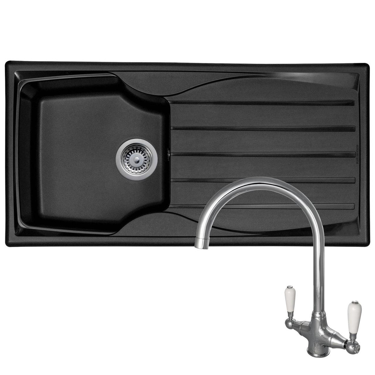 The Astracast Sierra range of fully reversible, composite sinks are high on quality but low on cost. They are manufactured from Teflite, a polypropylene material which is resistant to scratches, stains and heat. Not only are these sinks hard wearing, but they are also lightweight and can be installed on any work surface. Astracast are renowned globally for manufacturing high quality sinks and taps and this sink is no exception. This package comes with the Reginox Elbe single lever swan neck mixer tap, which has white ceramic covered handles to perfectly contrast the colour of the sink.