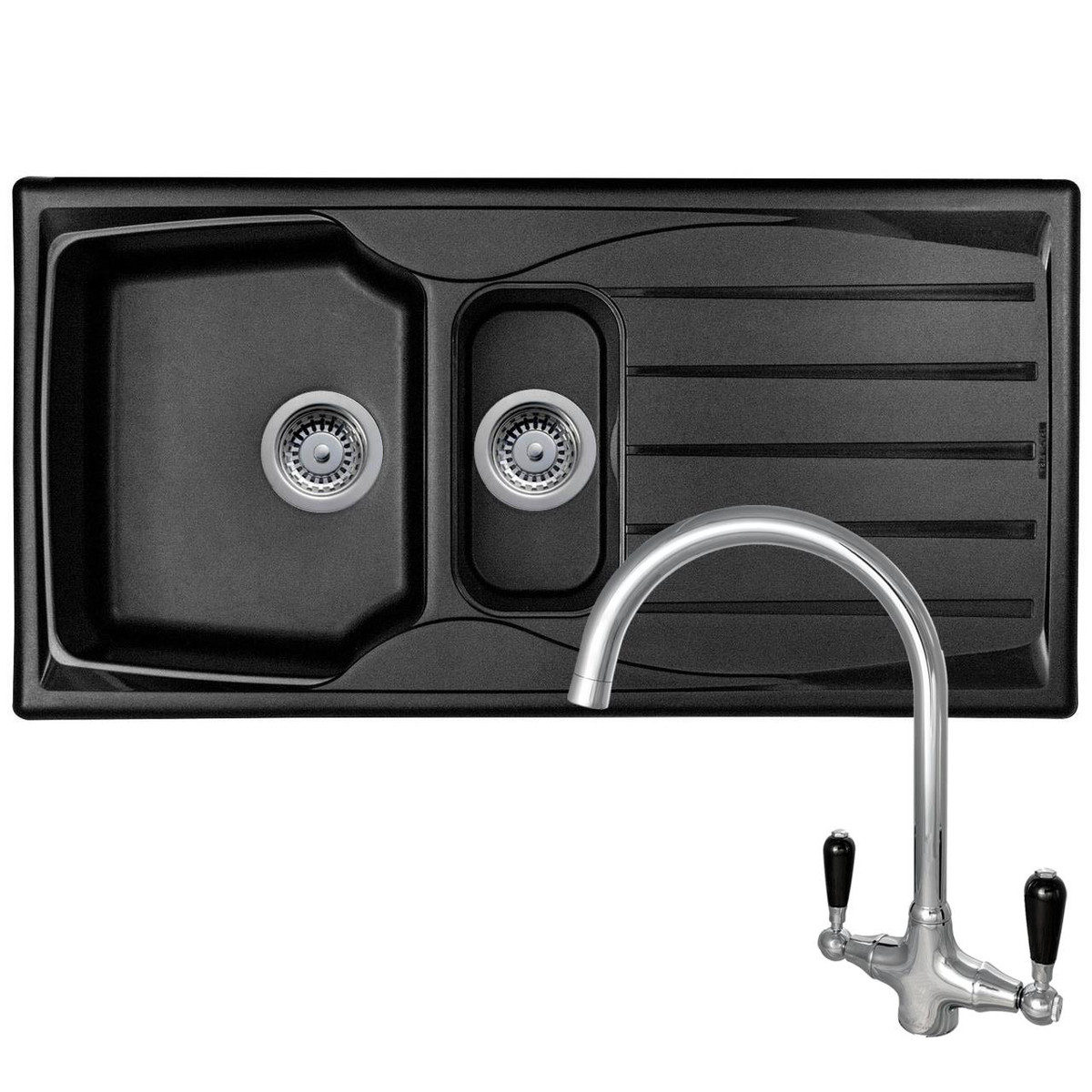 Astracast Sierra 1.5 Bowl Black Reversible Teflite Kitchen Sink & Waste Kit