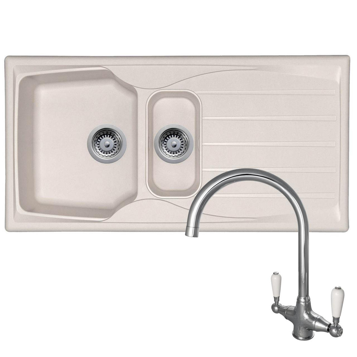 The Astracast Sierra range of fully reversible, composite sinks are high on quality but low on cost. They are manufactured from Teflite, a polypropylene material which is resistant to scratches, stains and heat. Not only are these sinks hard wearing, but they are also lightweight and can be installed on any work surface. This sink comes with a good sized main bowl and a smaller bowl that is useful for preparing fresh produce. Astracast are renowned globally for manufacturing high quality sinks and taps and this sink is no exception. This package includes the Reginox Elbe swan neck mixer tap that features white covered handles that add an extra dimension to the set.