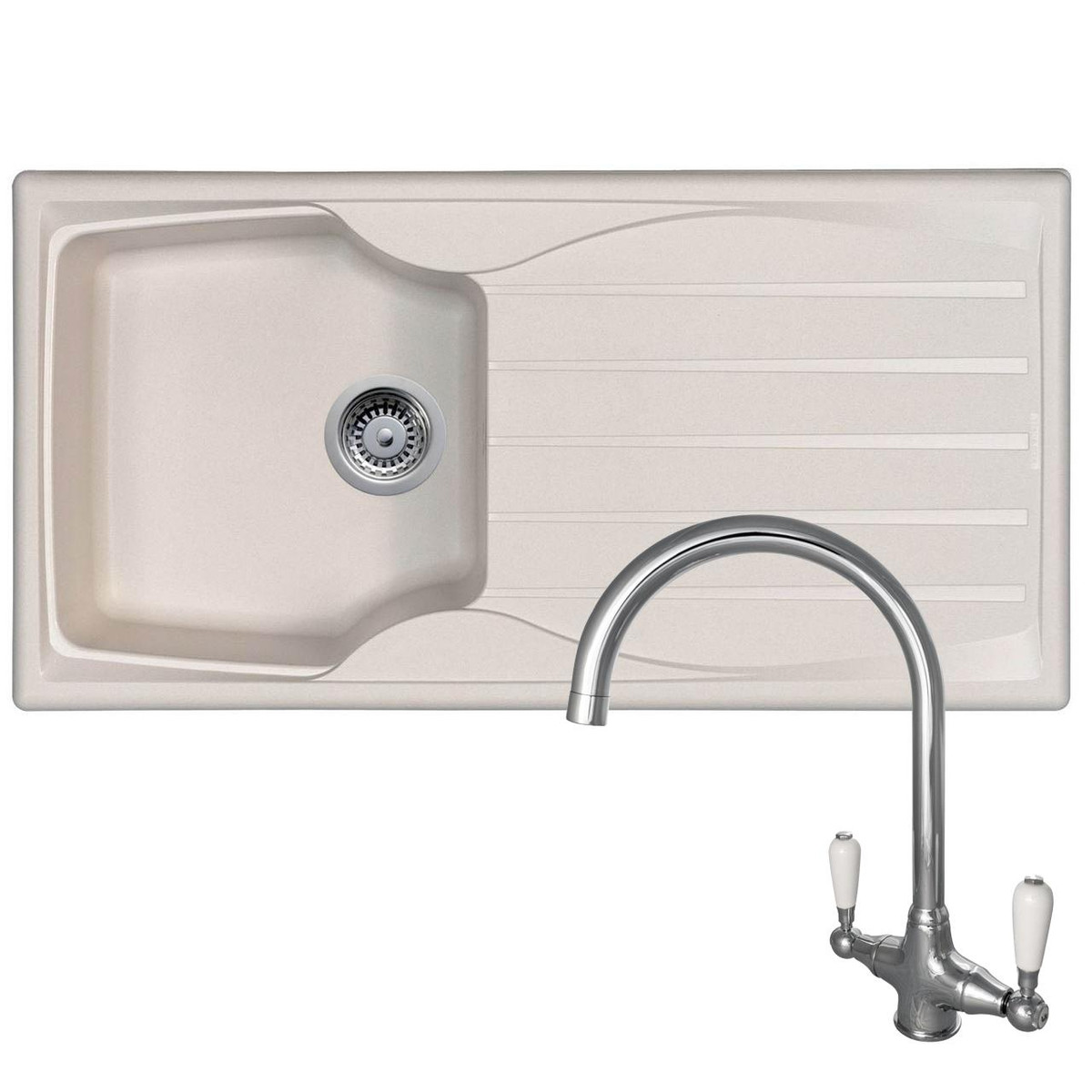 The Astracast Sierra range of fully reversible, composite sinks are high on quality but low on cost. They are manufactured from Teflite, a polypropylene material which is resistant to scratches, stains and heat. Not only are these sinks hard wearing, but they are also lightweight and can be installed on any work surface. Astracast are renowned globally for manufacturing high quality sinks and taps and this sink is no exception. This package comes with the Reginox Elbe single lever swan neck mixer tap, which has white ceramic covered handles to perfectly complement the colour of the sink.