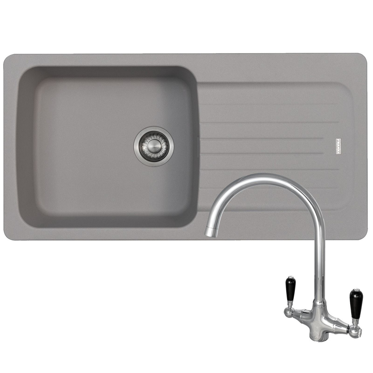 The AVETA10STONE-Brooklyn pack comprises of a stunning Franke Tectonite sink and a Reginox Brooklyn swan neck dual lever tap. The sink is resistant to stains, scratches and heat and with a large single bowl is perfect in your kitchen or utility room. Tectonite is a revolutionary material that is as strong as granite without the heavy weight or brittleness. The sink is complemented by the Brooklyn tap that has black ceramic covered handles and shiny chrome finish that will add a contemporary look to any kitchen.
