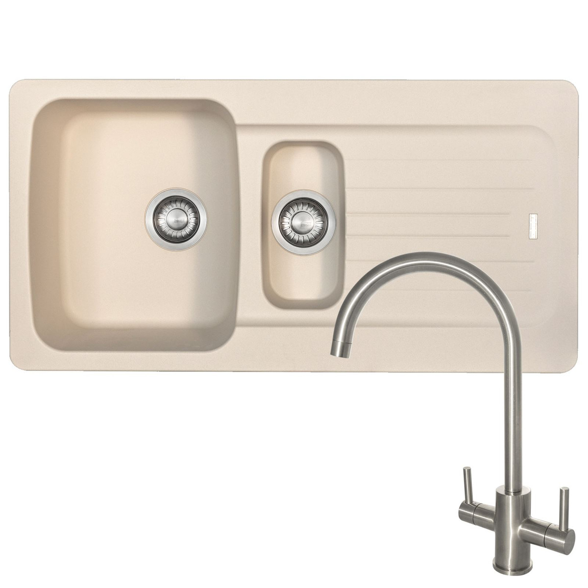Franke Aveta 1.5 Bowl CreamTectonite Reversible Kitchen Sink And Waste kit