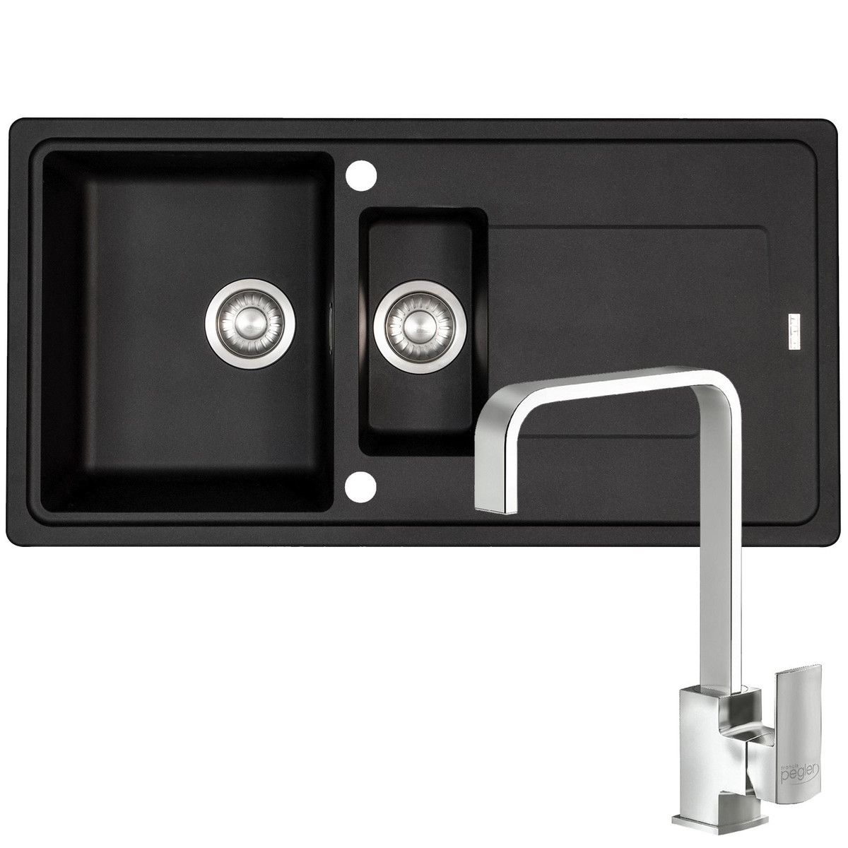 Franke Gemini GMD651BL 1.5 Bowl Black Tectonite Reversible Sink And Waste Kit