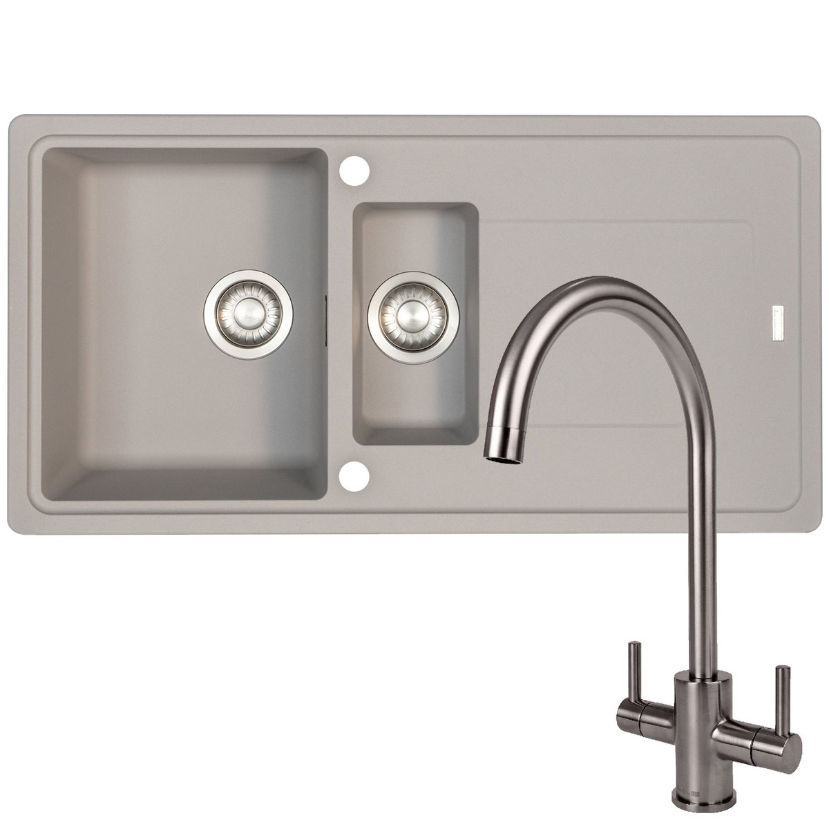 Franke Gemini GMD651STONE 1.5 Bowl Grey Tectonite Reversible Sink And Waste Kit