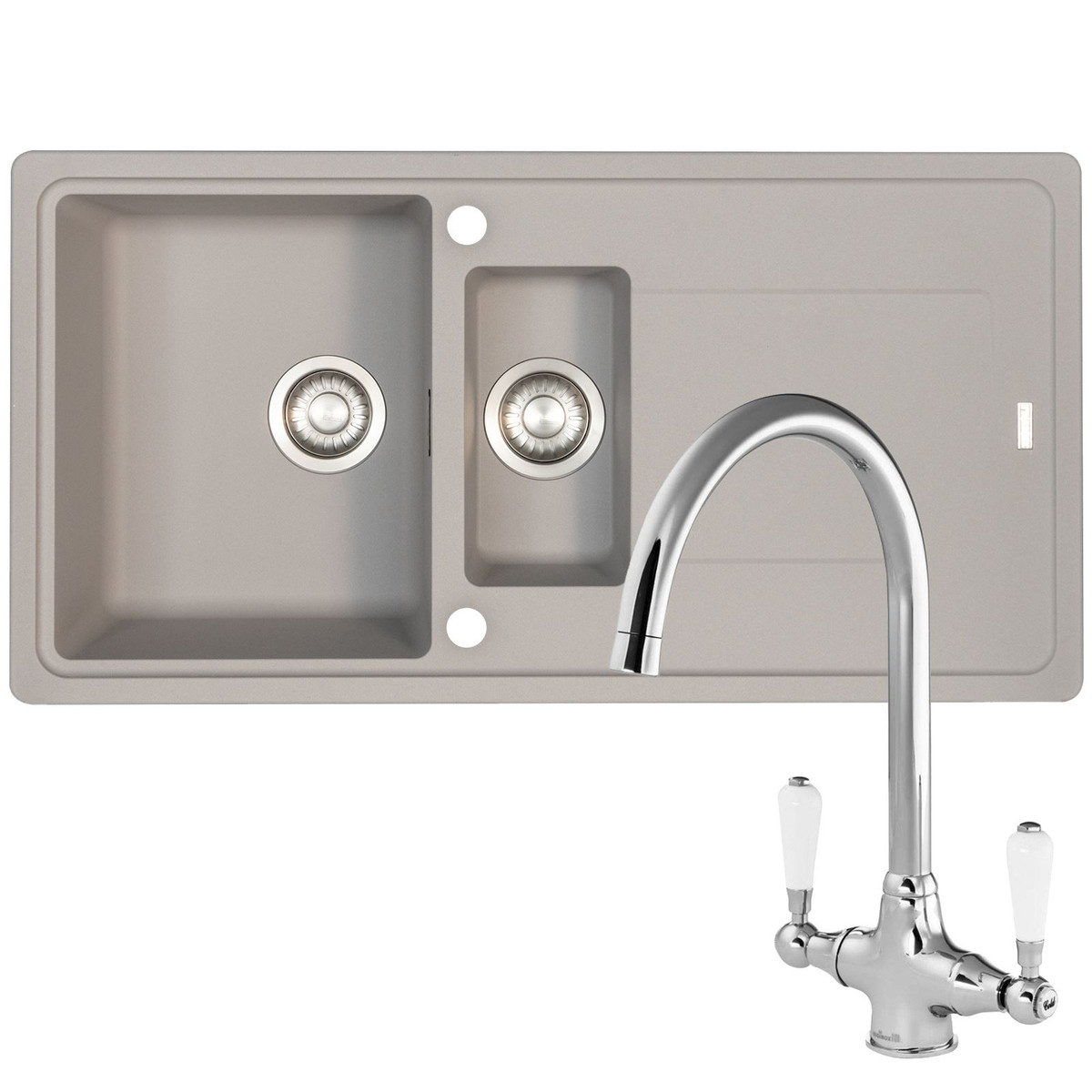 Franke Gemini GMD651STONE 1.5 Bowl Grey Tectonite Reversible Sink And Waste Kit