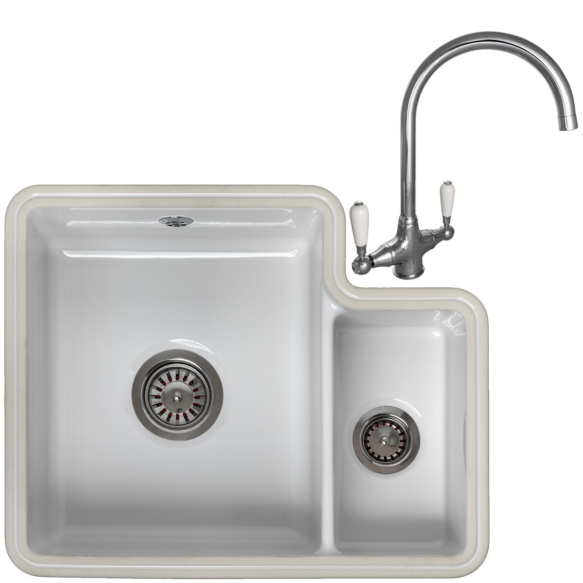 Reginox Tuscany 1.5 Bowl White Gloss Ceramic Undermount Kitchen Sink & Waste