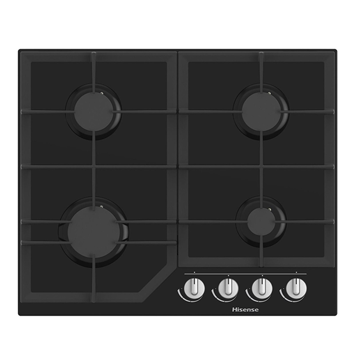 The GG643B by Hisense is a 60cm, 4 burner gas hob with a stylish glass top. It has durable cast iron pan supports that are easily removed to make cleaning quick and simple.