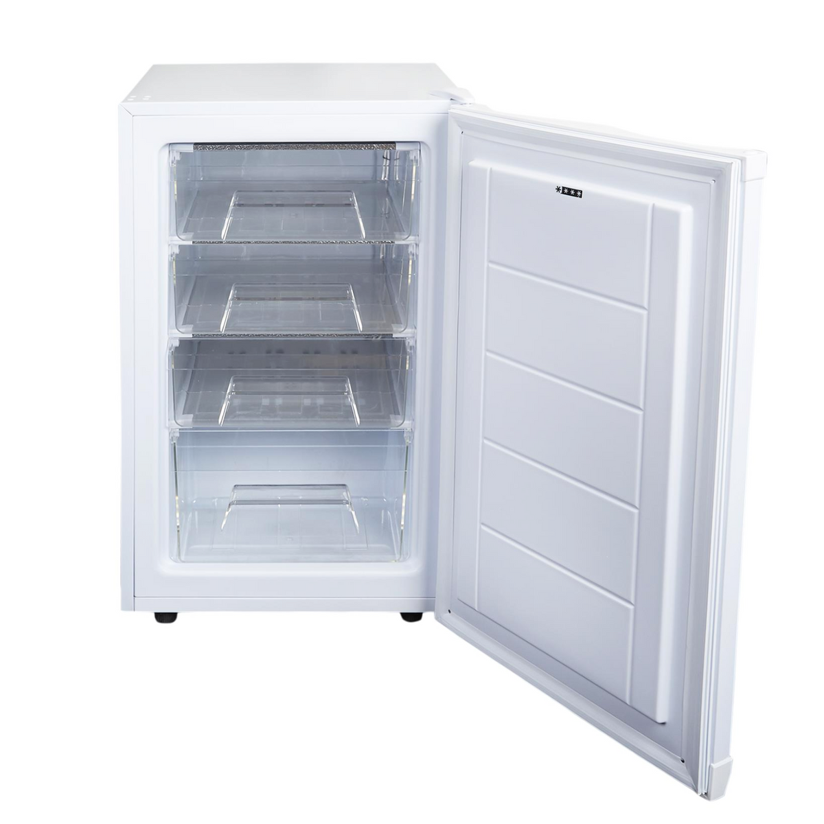 Maximise your kitchen space with the SIA UCF50WH/E Freestanding Under Counter Freezer. Featuring 77L net capacity storage space this freezer is ideal for compact kitchens or as a supplementary freezer. Designed for convenience, it comes with a reversible door, adjustable legs, and a 6-setting temperature control to keep your food perfectly frozen. The recessed handle adds a sleek finish, while 4 transparent drawers make organisation effortless. Operating quietly at 39dBa, this freezer also boasts a 4-star freezer rating, ensuring safe and efficient freezing.