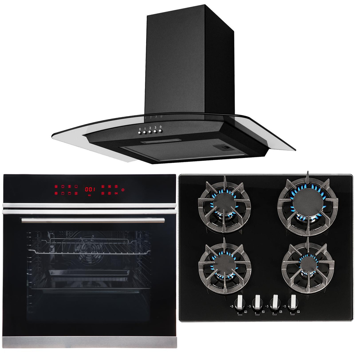 SIA CGH60BL 60cm Black Curved Glass Chimney Cooker Hood Kitchen Extractor Fan