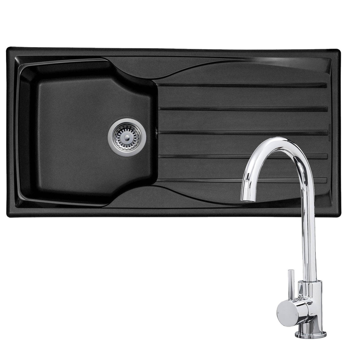 Astracast Sierra 1 Bowl Black Reversible Teflite Composite Kitchen Sink & Waste