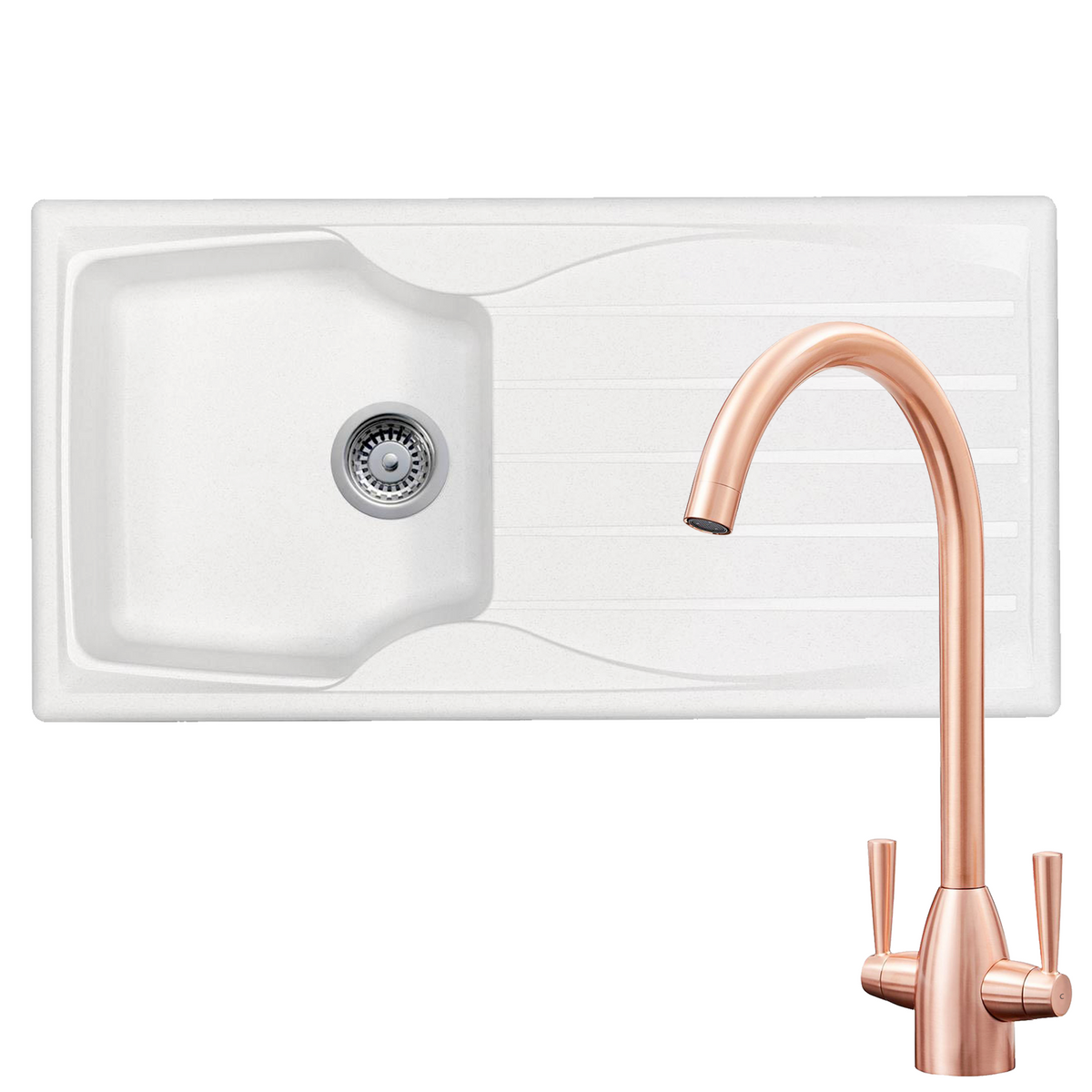 The Astracast Sierra range of fully reversible, composite sinks are high on quality but low on cost. They are manufactured from Teflite, a polypropylene material which is resistant to scratches, stains and heat. Not only are these sinks hard wearing, but they are also lightweight and can be installed on any work surface. Astracast are renowned globally for manufacturing high quality sinks and taps and this sink is no exception. The sink is complemented by the KT5CU tap that has a contemporary twin lever design and a modern copper finish.